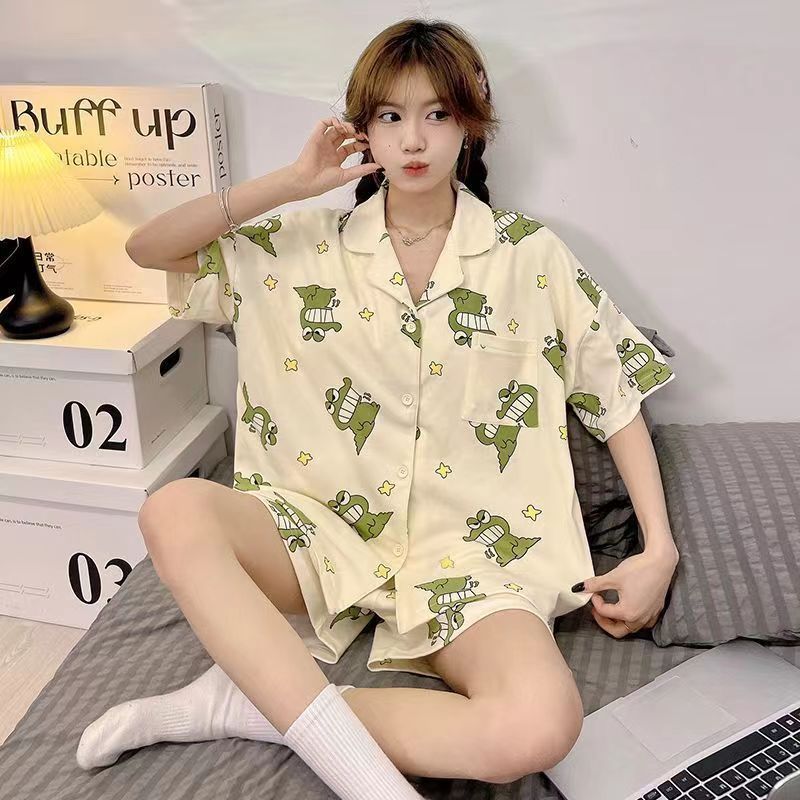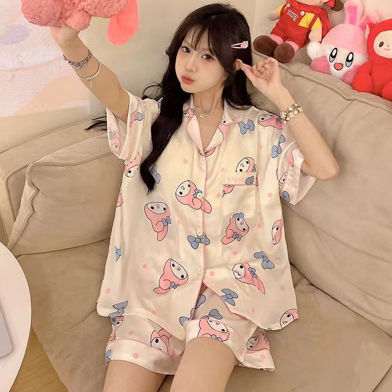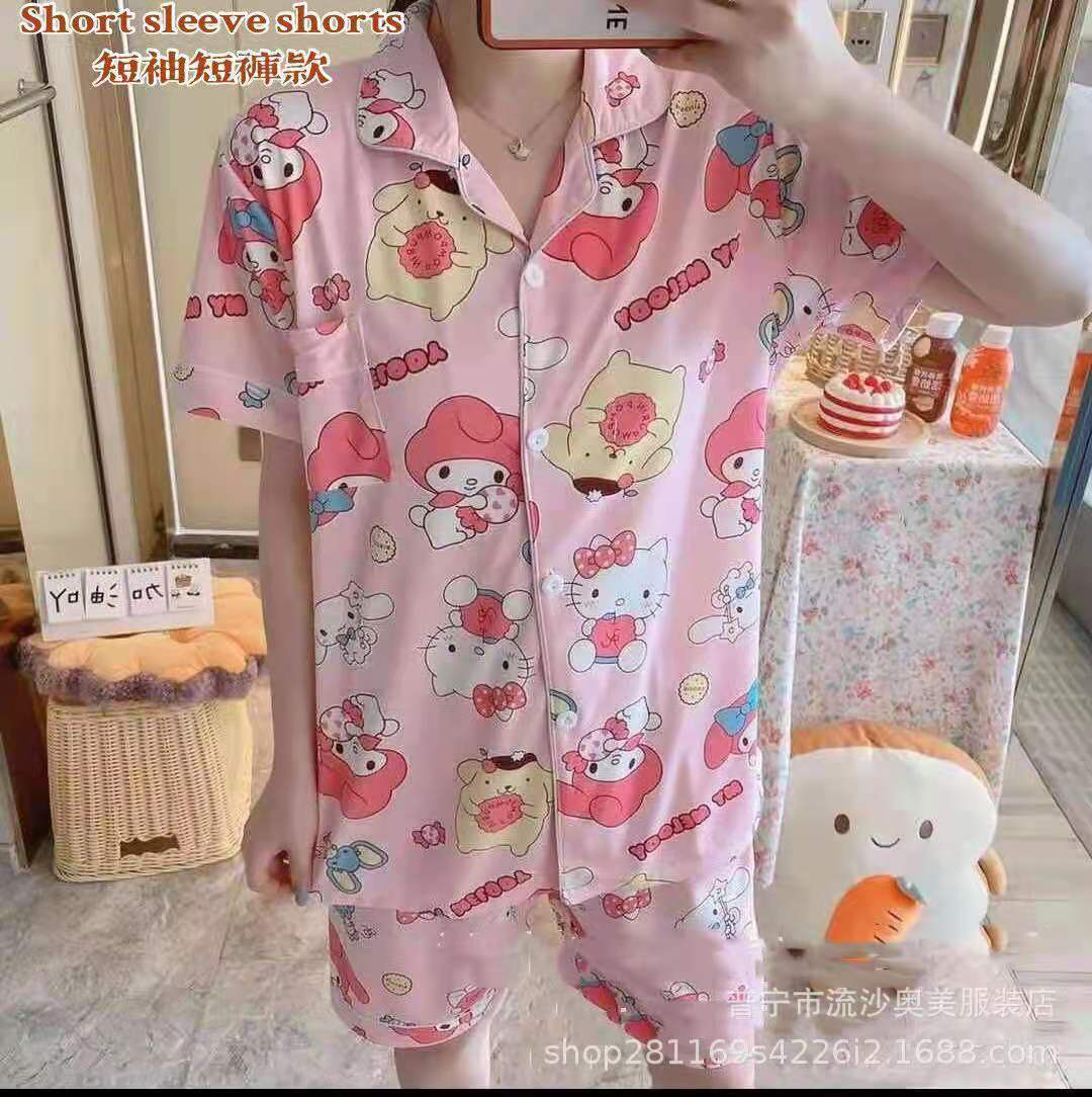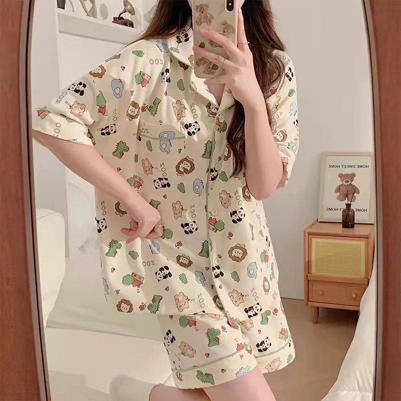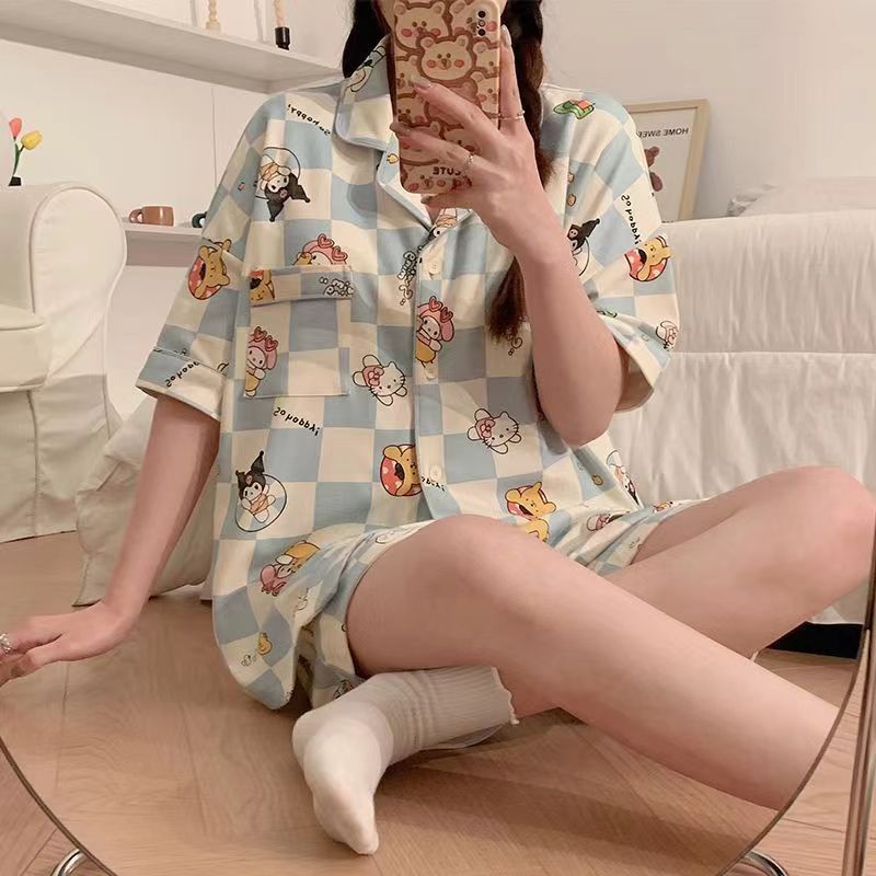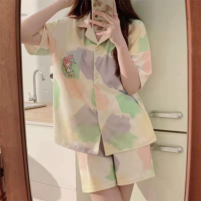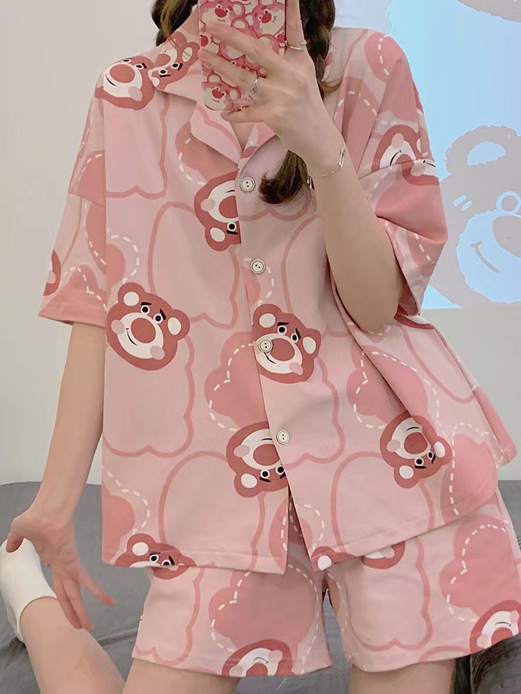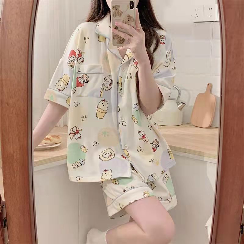 느슨한 인터넷 연예인 잠옷 새로운 디자인 만화 한국어 버전 멜로 반바지 여름 투피스 세트 소규모 사업 여성 반팔 가정복스토어 가기