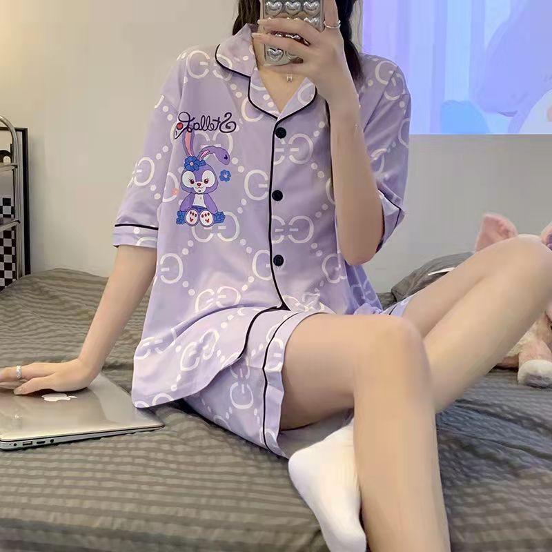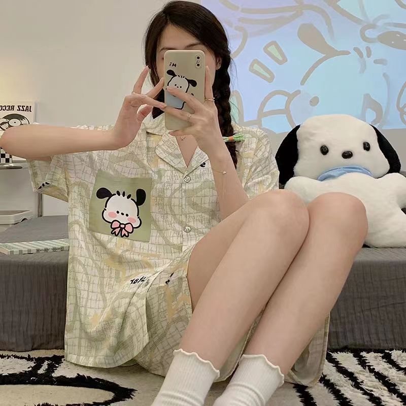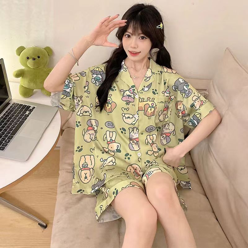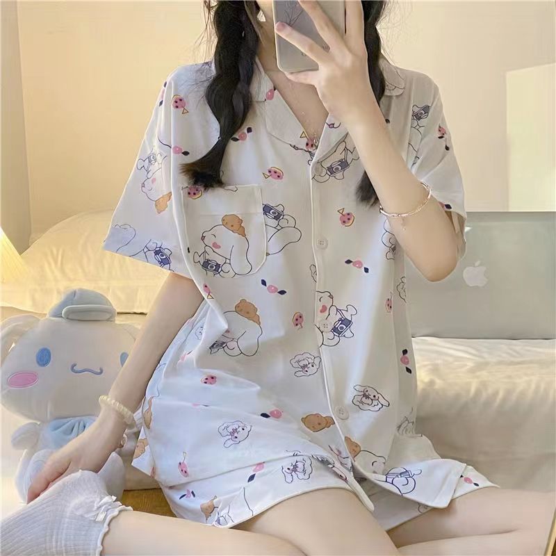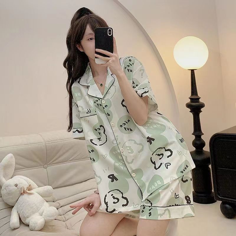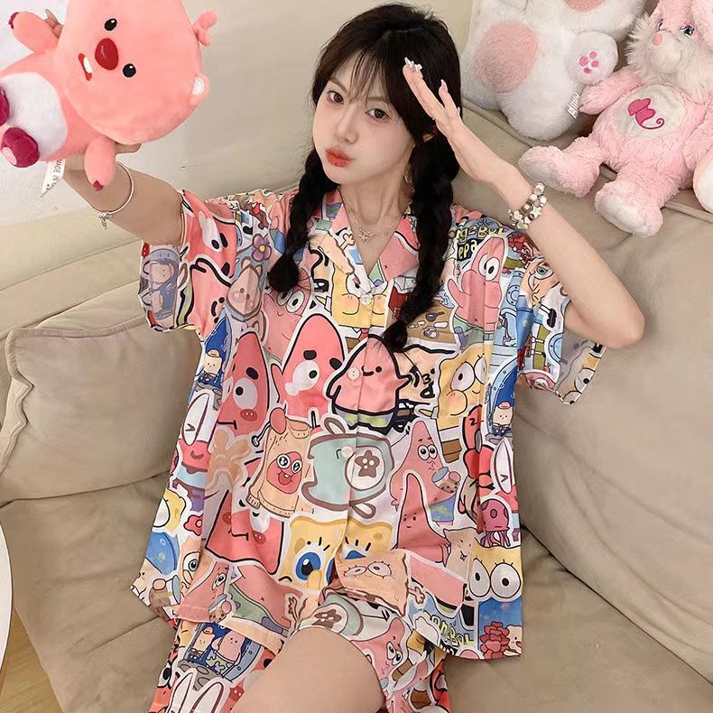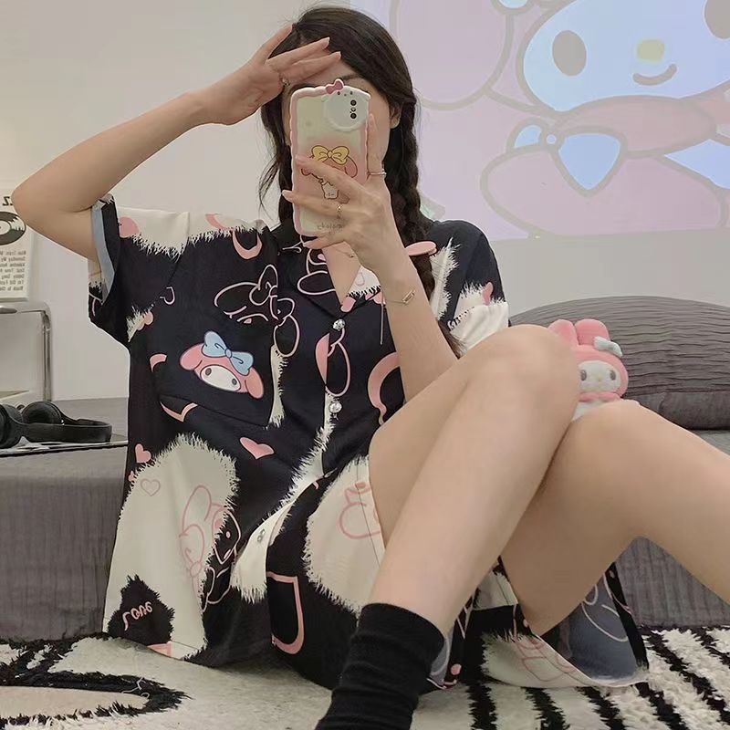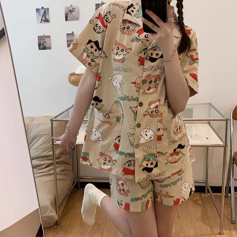 느슨한 인터넷 연예인 잠옷 새로운 디자인 만화 한국어 버전 멜로 반바지 여름 투피스 세트 소규모 사업 여성 반팔 가정복스토어 가기
