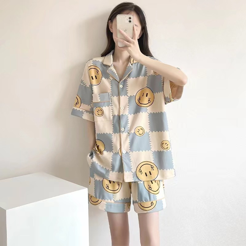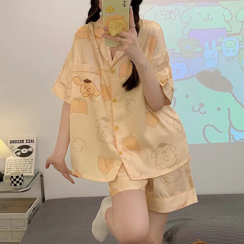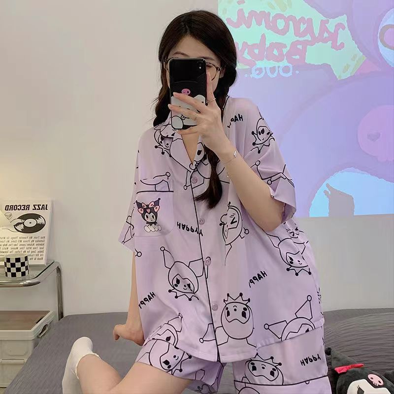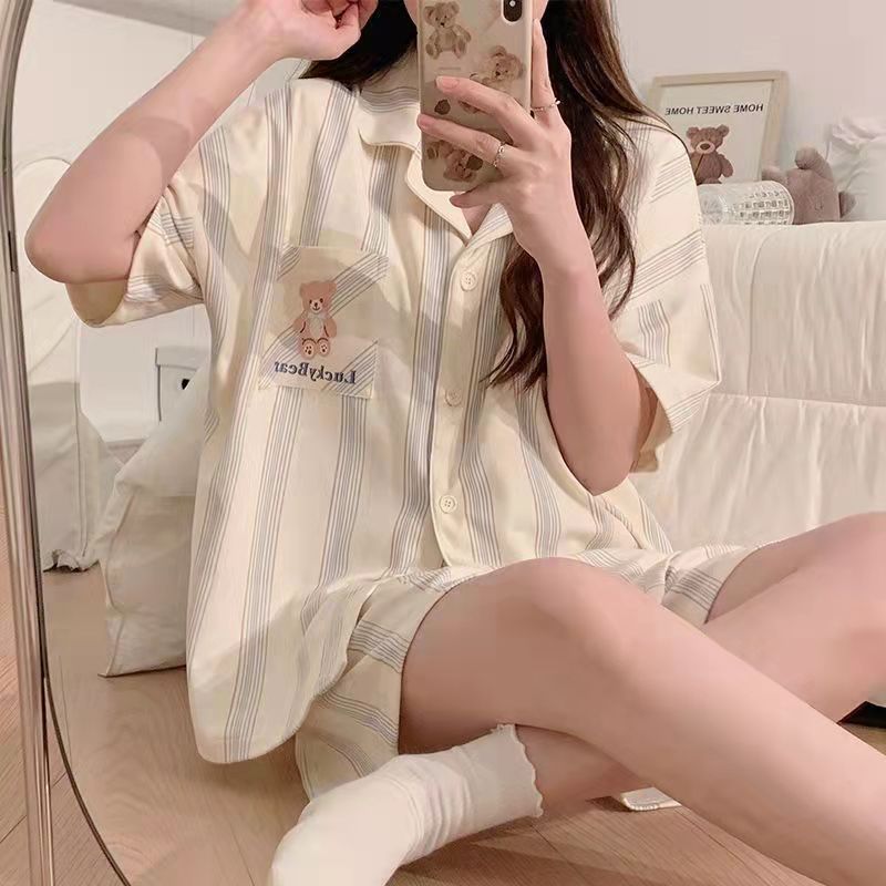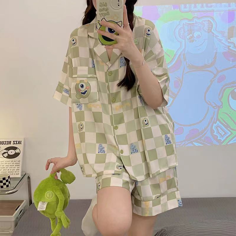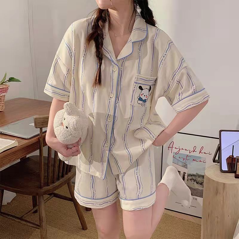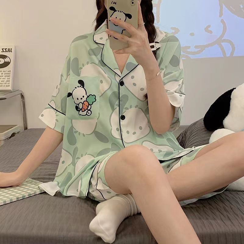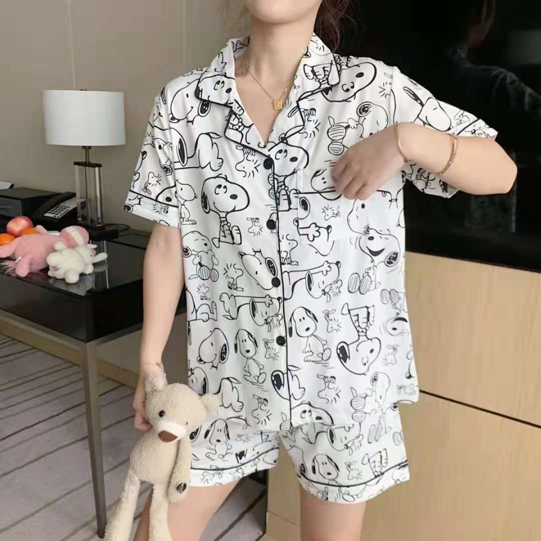 느슨한 인터넷 연예인 잠옷 새로운 디자인 만화 한국어 버전 멜로 반바지 여름 투피스 세트 소규모 사업 여성 반팔 가정복스토어 가기