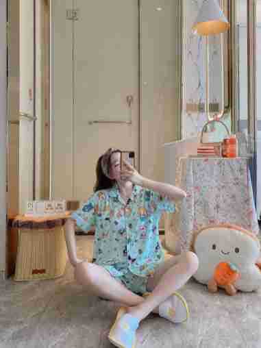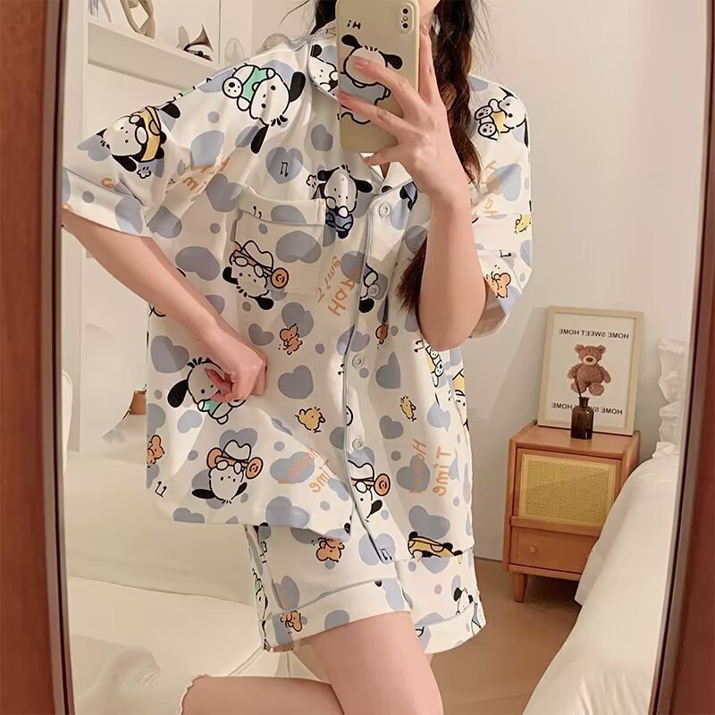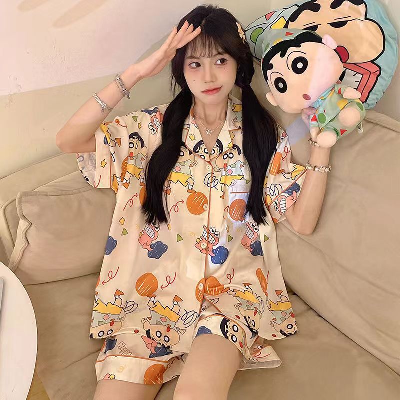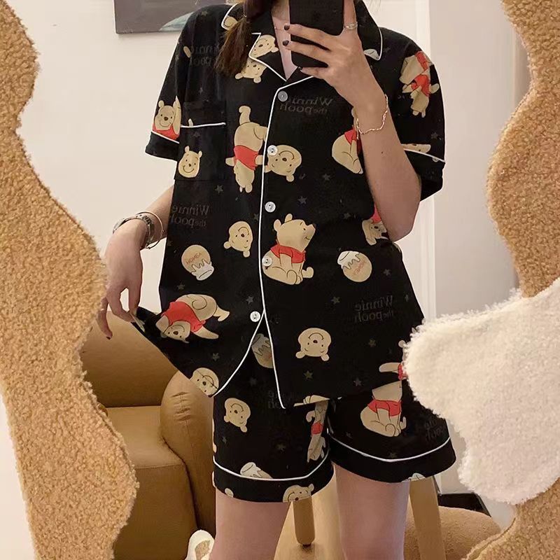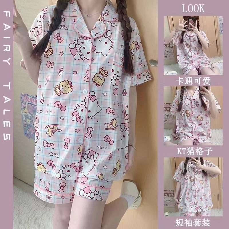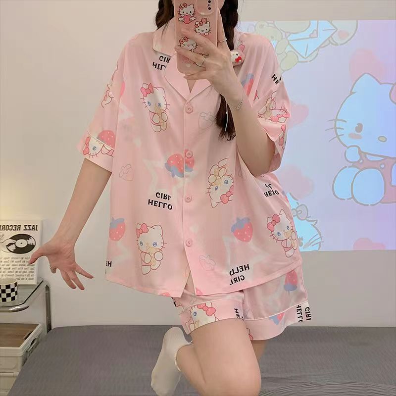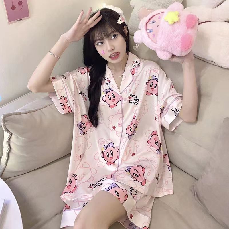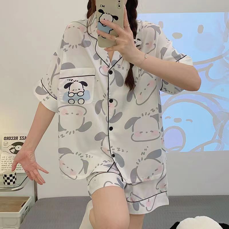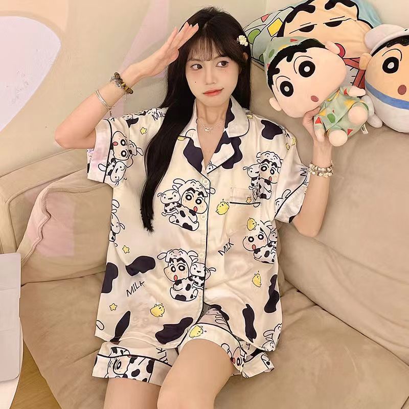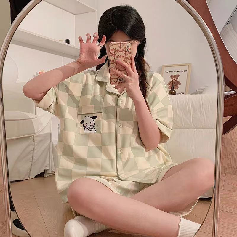 느슨한 인터넷 연예인 잠옷 새로운 디자인 만화 한국어 버전 멜로 반바지 여름 투피스 세트 소규모 사업 여성 반팔 가정복스토어 가기