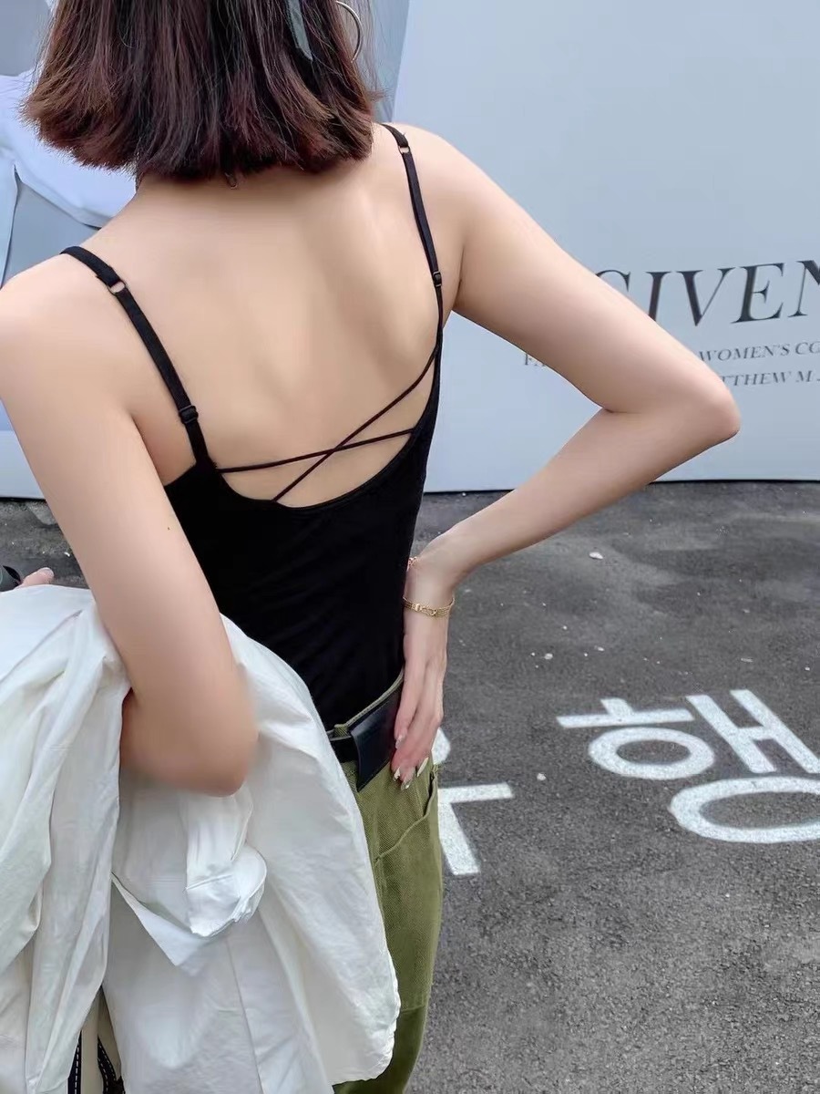 누드 모달 조끼, 라텍스 원컵, 고정 컵, 튜브탑, 섹시하고 편안한, 빅 백리스 크로스 할로우 아름다운 등