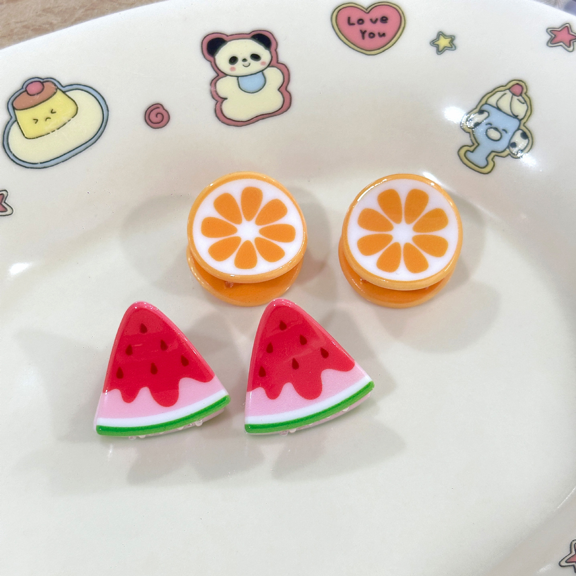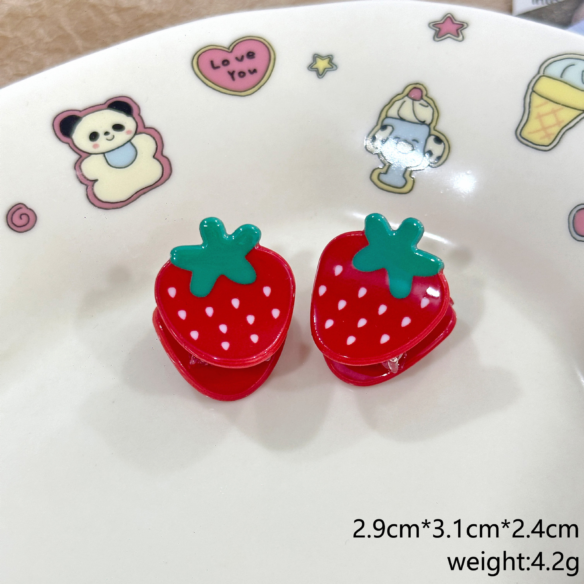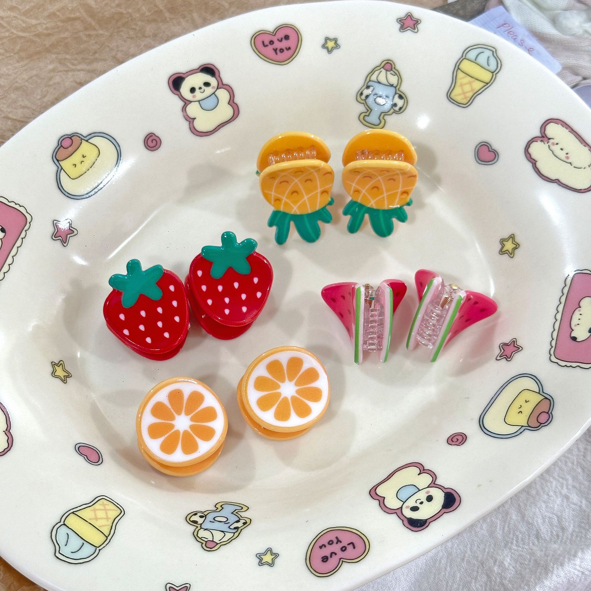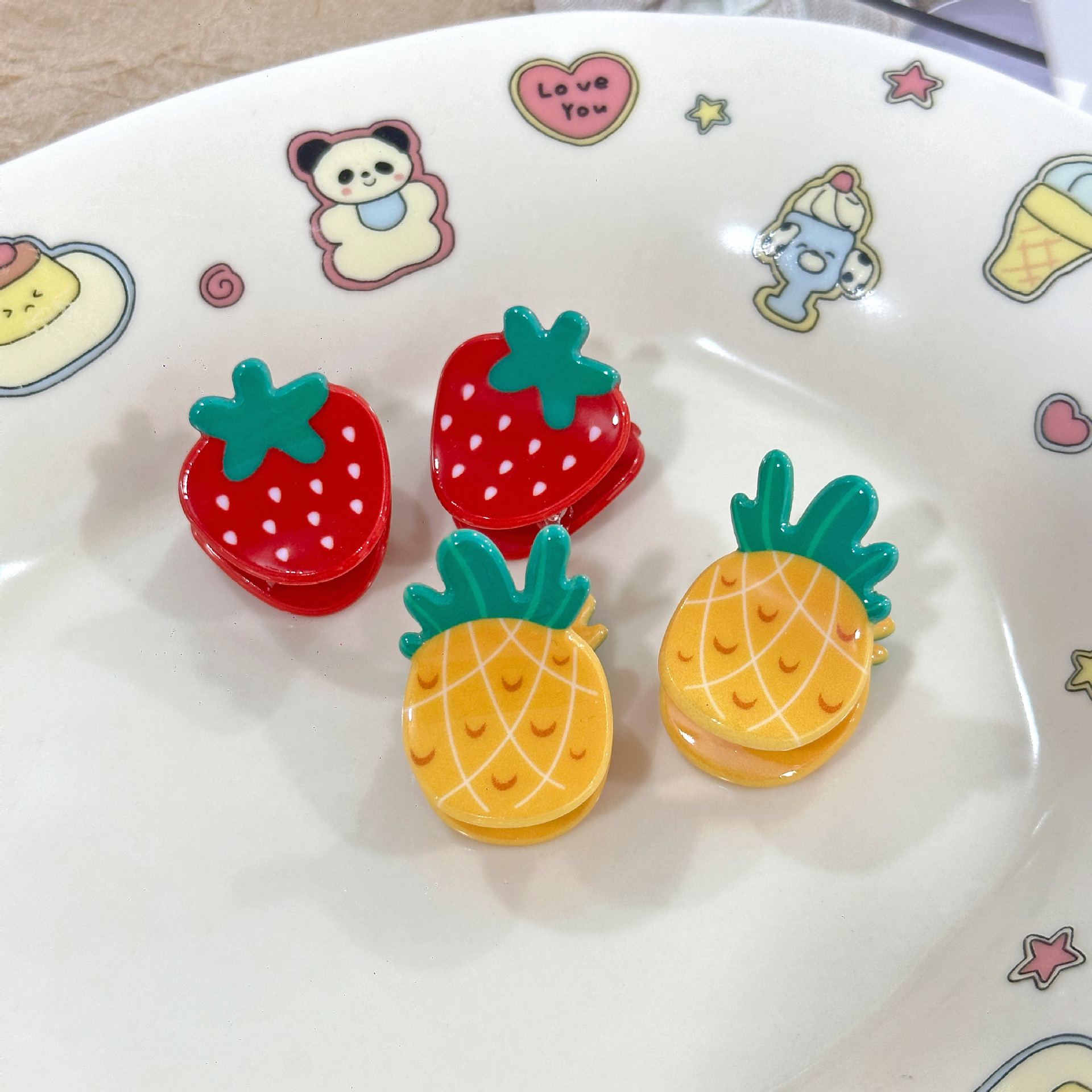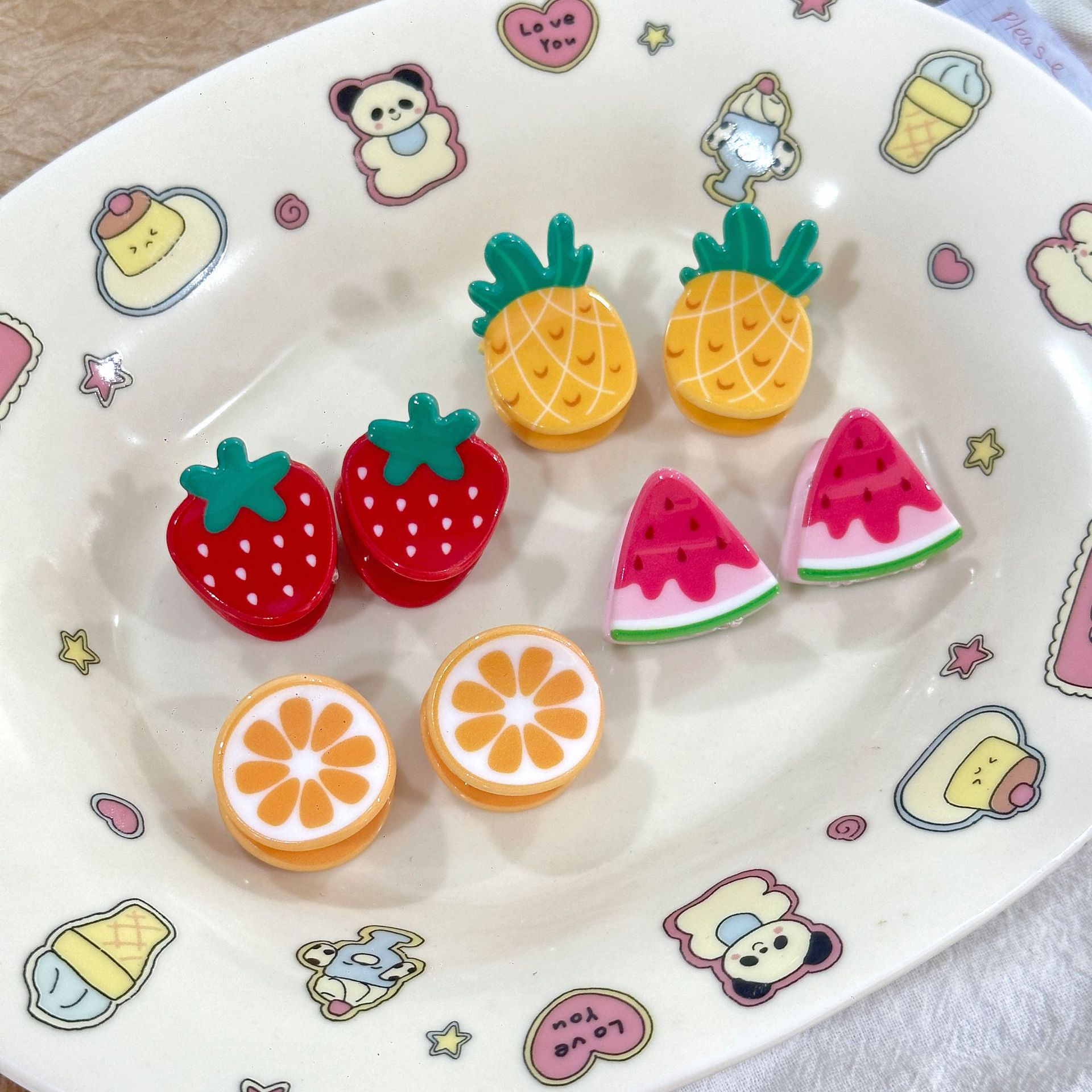 귀여운 미니 밀크 화이트 과일 집게, 딸기 수박 모양 머리핀, 탑 클립, 사이드 클립, 머리카락 클립, 앞머리 클립, 헤어 액세서리