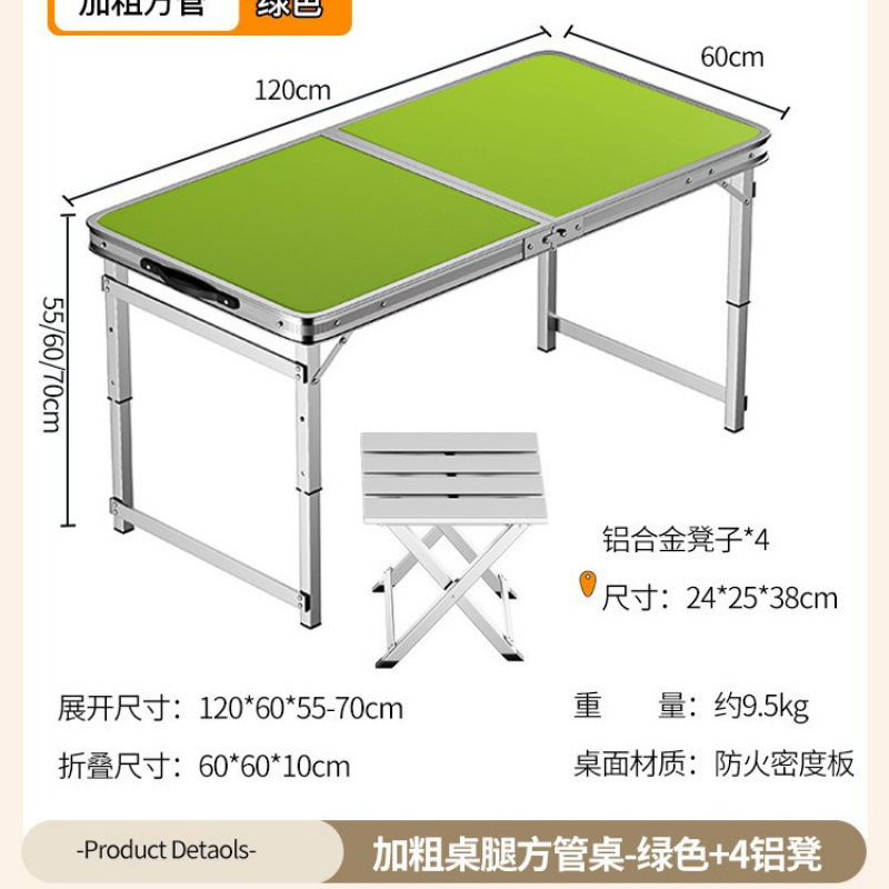 • [업그레이드 된 알루미늄 합금 사각 튜브] 120*60cm 녹색 + 알루미늄 의자 4개