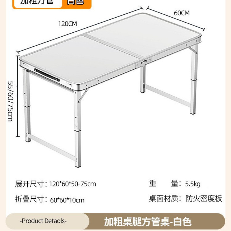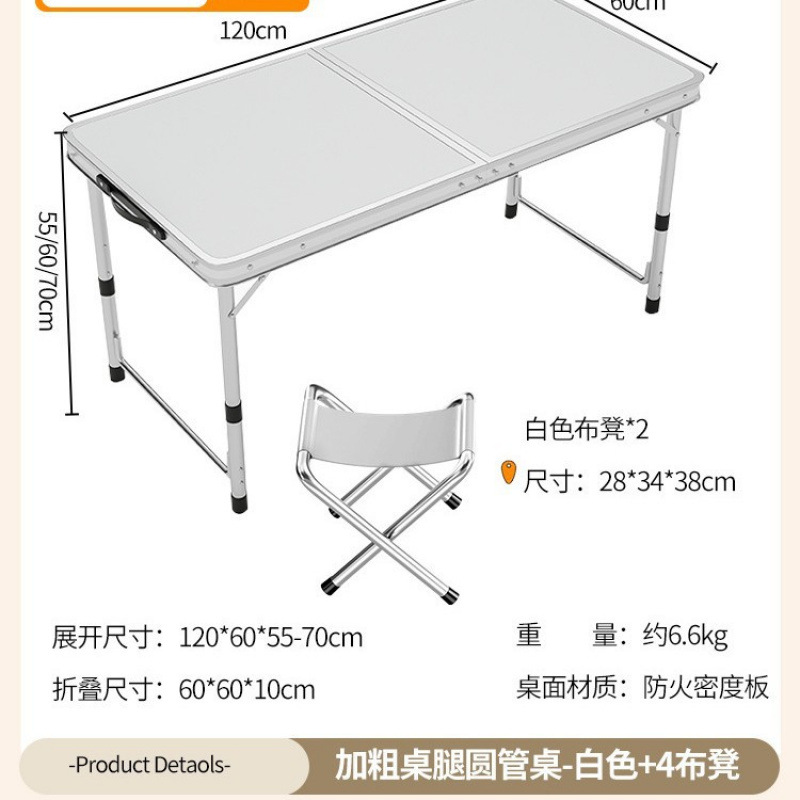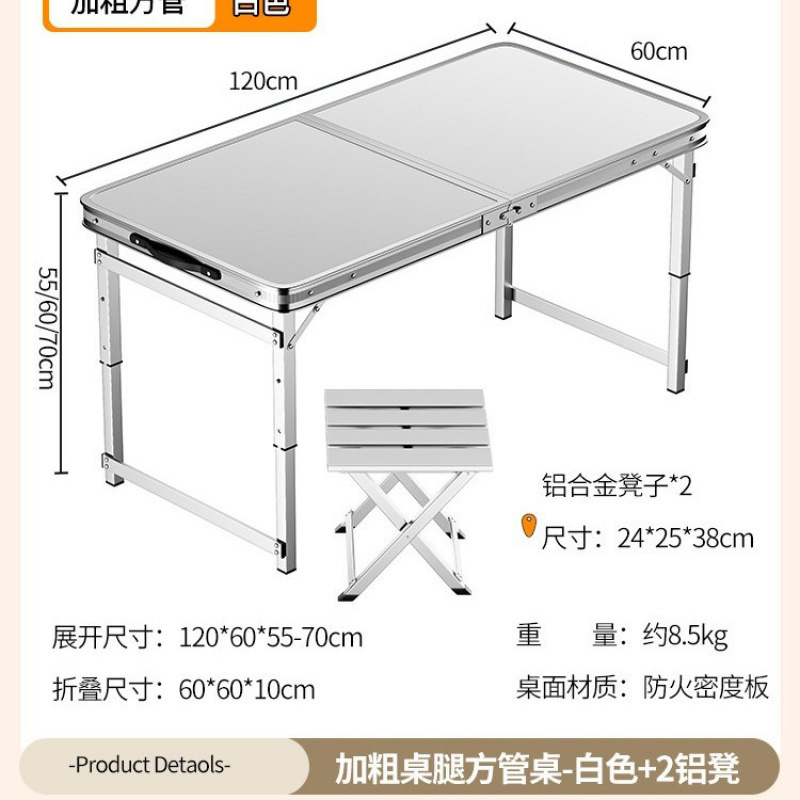 • [업그레이드 된 알루미늄 합금 사각 튜브] 120*60cm 흰색 + 알루미늄 의자 2개