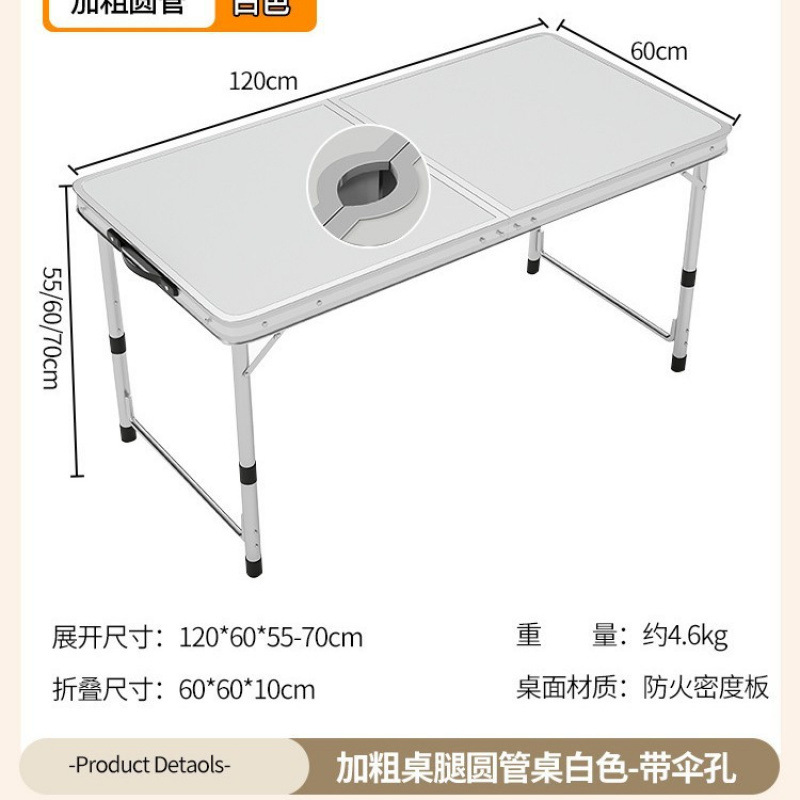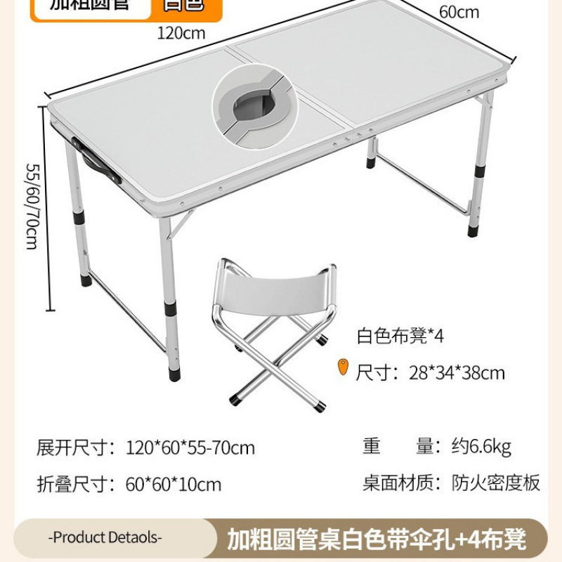 • [알루미늄 합금 원형 튜브] 120*60cm 흰색 우산 구멍 + 천 의자 4개