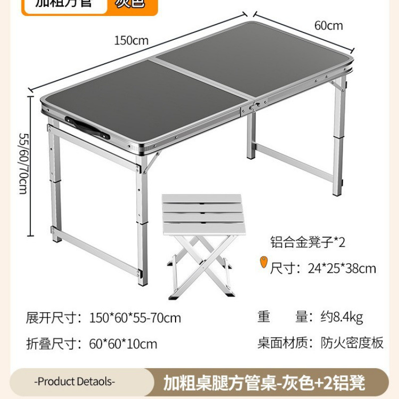 • [업그레이드 된 알루미늄 합금 사각 튜브] 150*60cm 회색 + 알루미늄 의자 2개