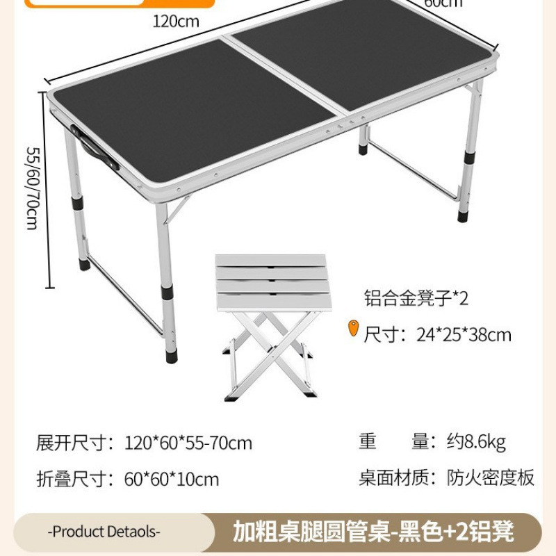 • [업그레이드 된 알루미늄 합금 사각 튜브] 120*60cm 검정색 + 알루미늄 의자 2개