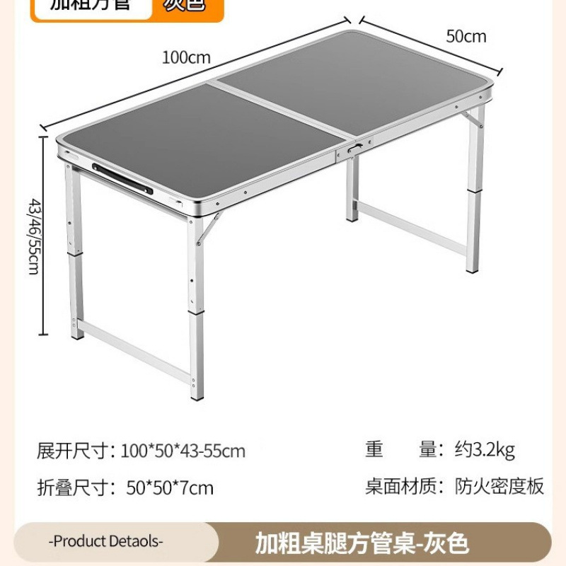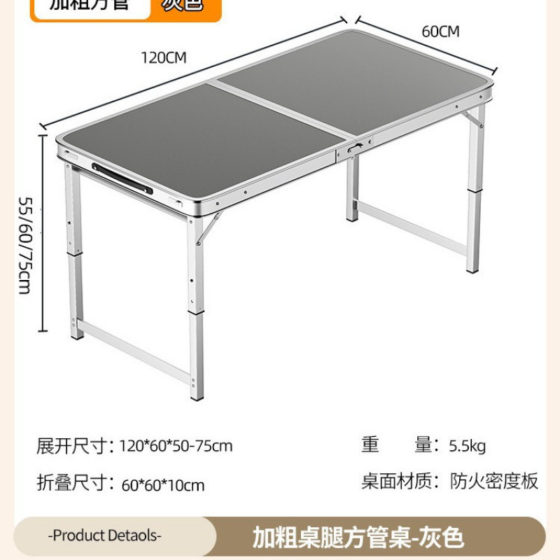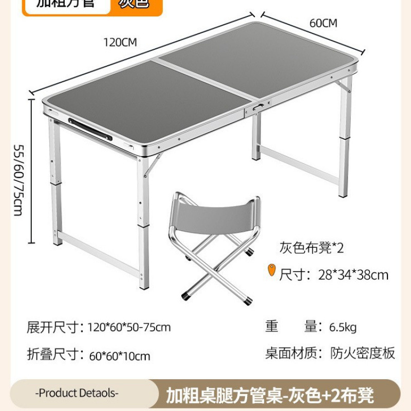 • [업그레이드 된 알루미늄 합금 사각 튜브] 120*60cm 회색 + 알루미늄 의자 2개
