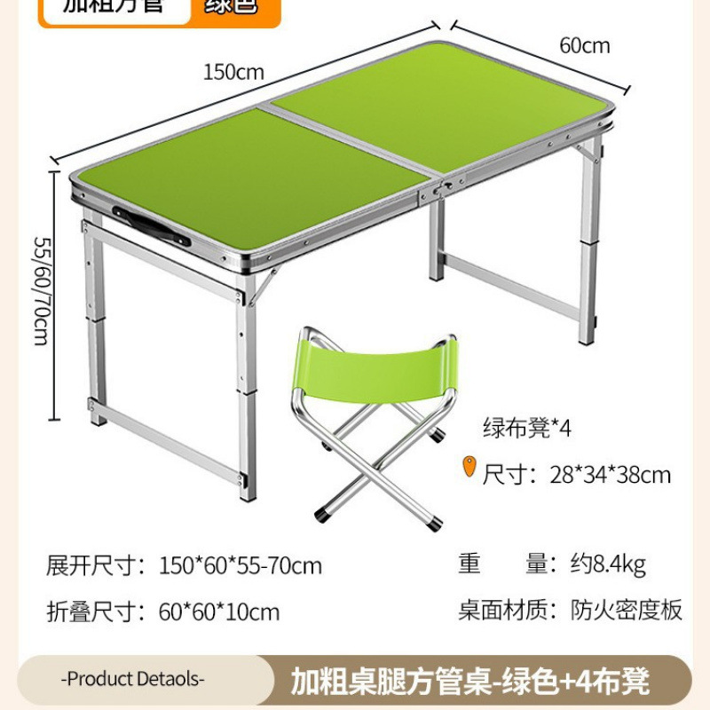 • [업그레이드 된 알루미늄 합금 사각 튜브] 150*60cm 녹색 + 알루미늄 의자 4개