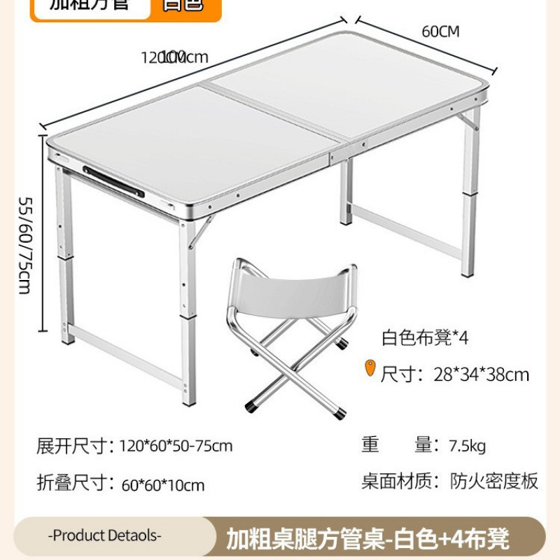 • [업그레이드 된 알루미늄 합금 사각 튜브] 120*60cm 흰색 + 천 의자 4개