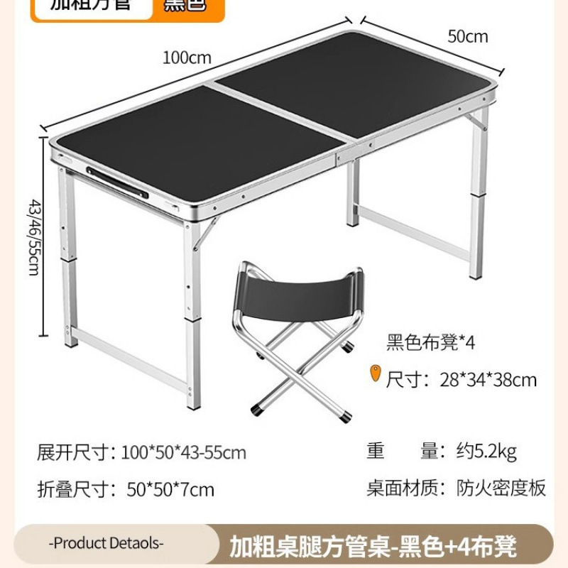 • [업그레이드 된 알루미늄 합금 사각 튜브] 120*60cm 검정색 + 알루미늄 의자 4개