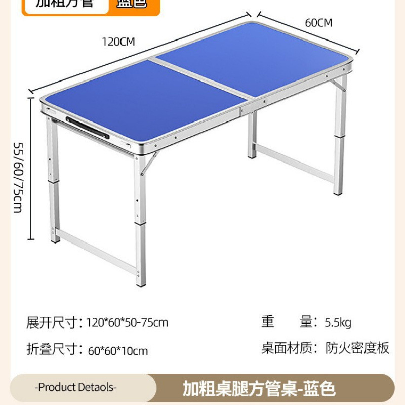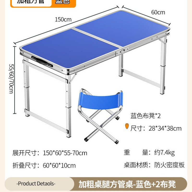 • [업그레이드 된 알루미늄 합금 사각 튜브] 120*60cm 파란색 + 알루미늄 의자 2개