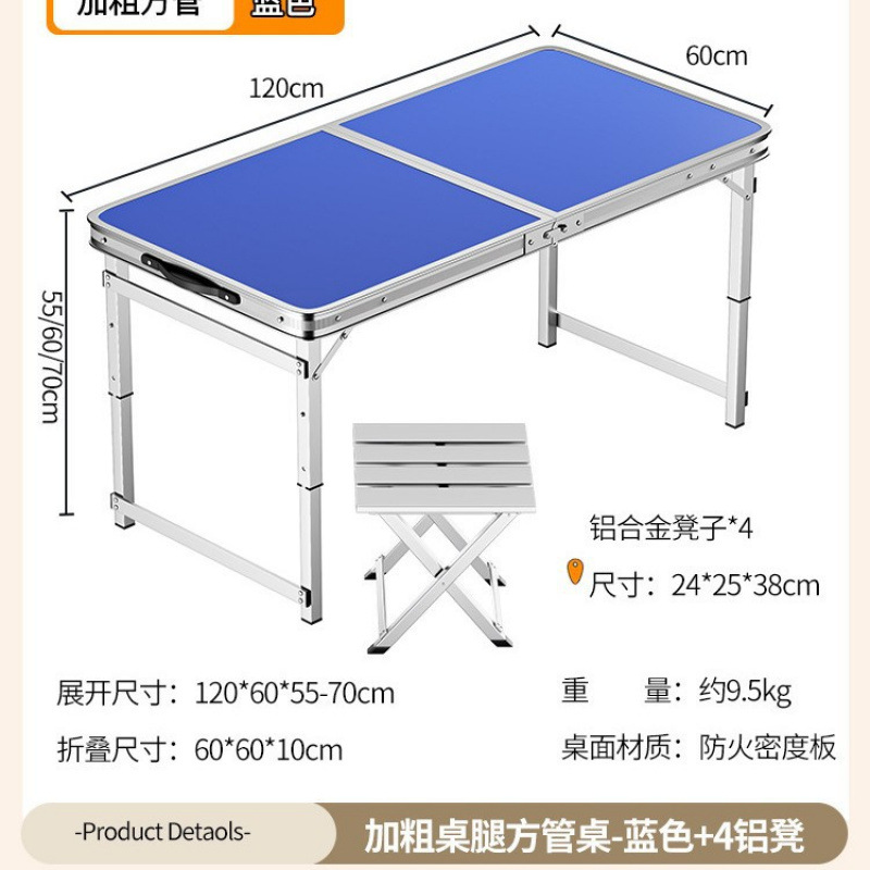 • [업그레이드 된 알루미늄 합금 사각 튜브] 120*60cm 블루 + 알루미늄 스툴 4개