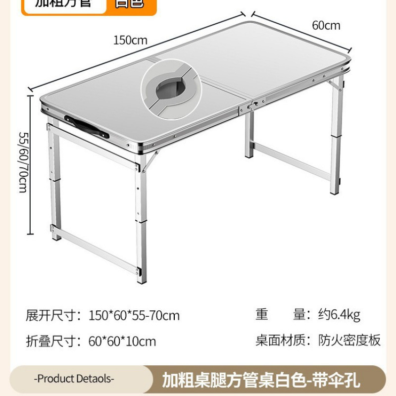 • [업그레이드 된 알루미늄 합금 사각 튜브] 150*60cm 흰색 + 알루미늄 의자 2개