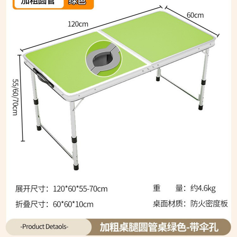 • [알루미늄 합금 원형 튜브] 120*60cm 녹색 우산 구멍 + 천 의자 4개