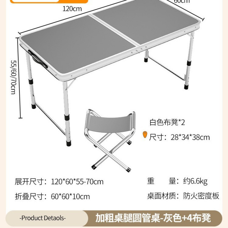 • [업그레이드 된 알루미늄 합금 사각 튜브] 120*60cm 회색 + 천 의자 2개
