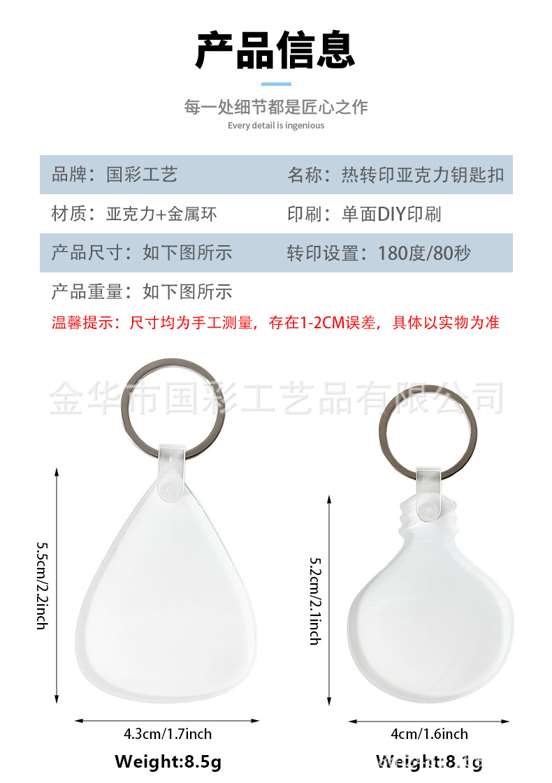 빈 열전달 아크릴 키 체인 맞춤형 DIY 펜던트 단면 인쇄 가능한 빈 소모품 제조 업체 도매스토어 가기