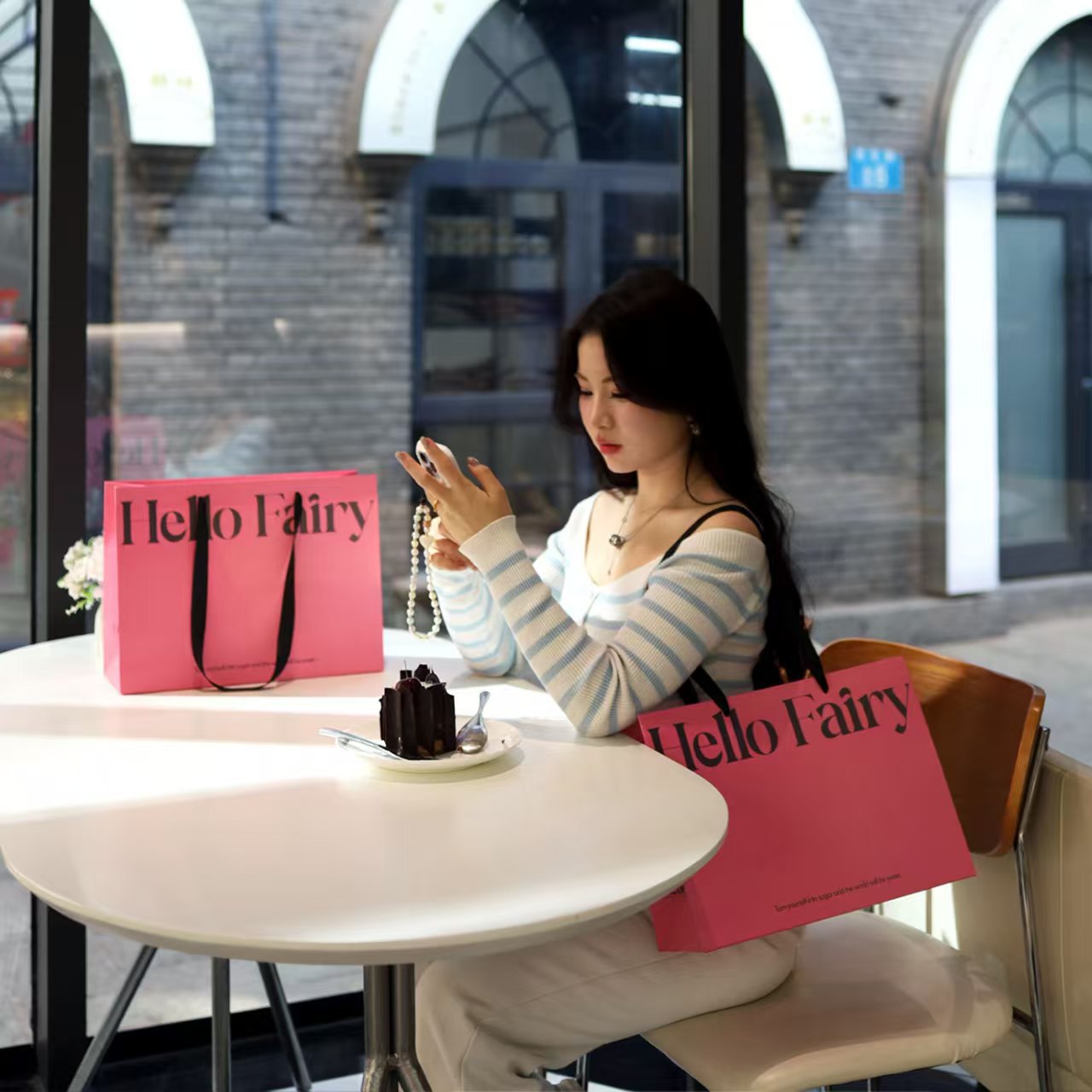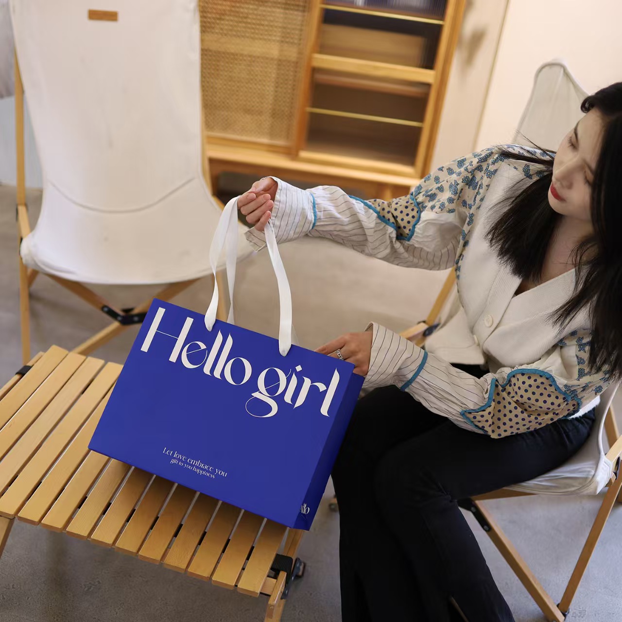 • 검은색 안녕 소녀, 흰색 판지, 25*12*20CM