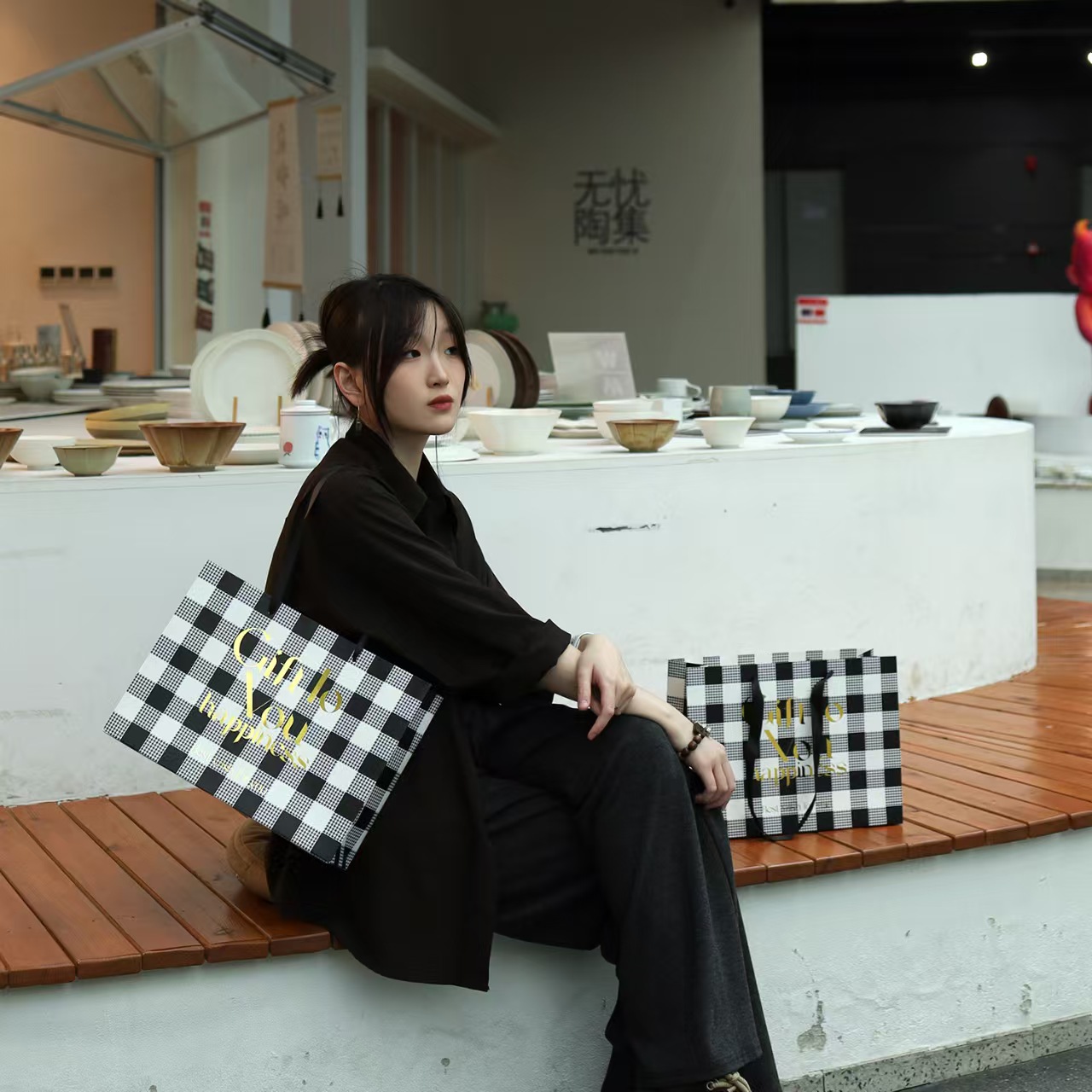 • 흑백 격자 GIFT; 흰색 판지; 35*13*26CM