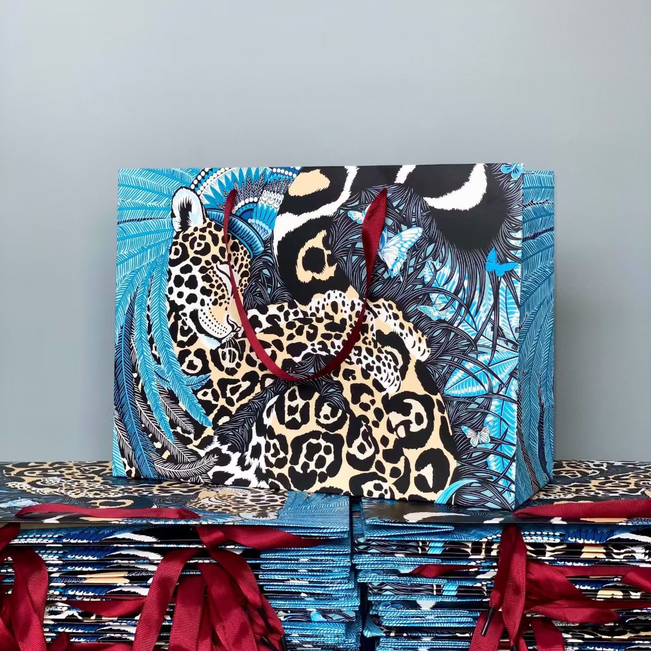 • 진한 파란색 표범 인쇄, 흰색 판지, 25*12*20CM