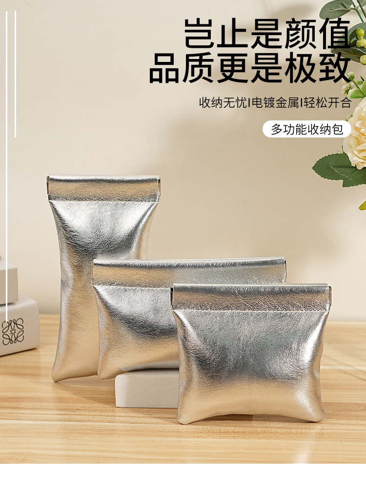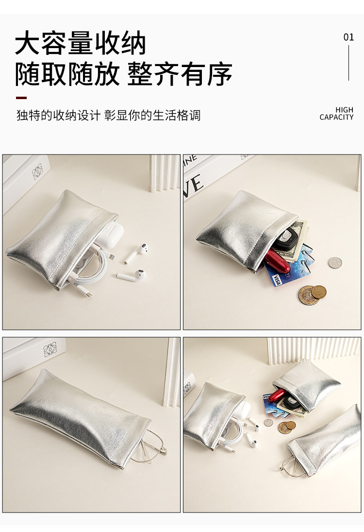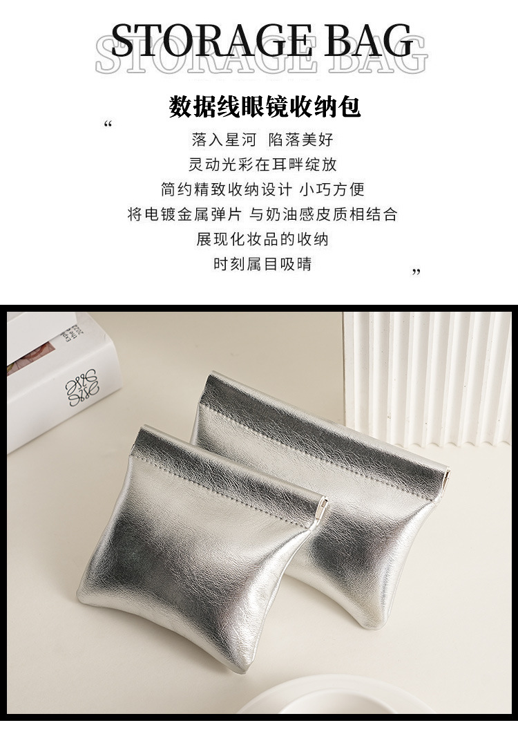 슈퍼 쿨 소형 실버 백, 휴대용 데이터 케이블 보관 가방, 자동으로 닫히는 와이어 헤드폰, 휴대용 미니 디지털 가방스토어 가기