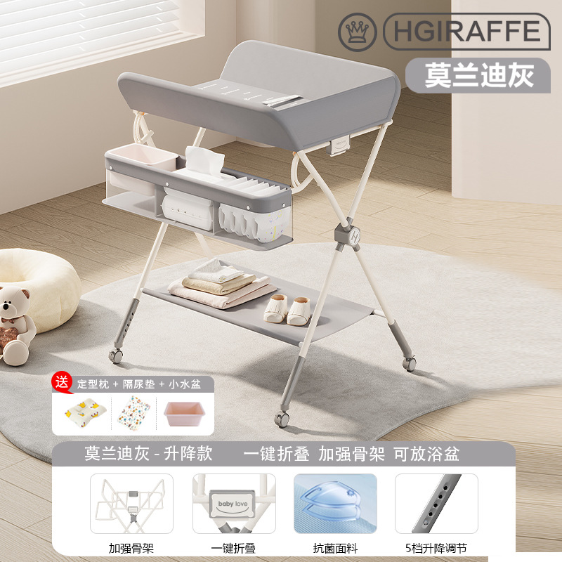 • KT-A. 그레이 [리프트 모델] 5단 리프트 + 매트 + 기저귀 패드 + 스타일링 베개 + 작은 세면대