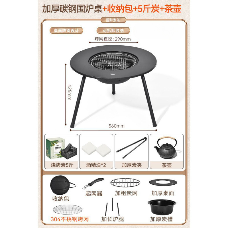테이블 그릴 실내 탁상 원시적인 분지 차 끓이고 난방 올인원 야외 그릴 스토브 세트 그릴 스토브스토어 가기