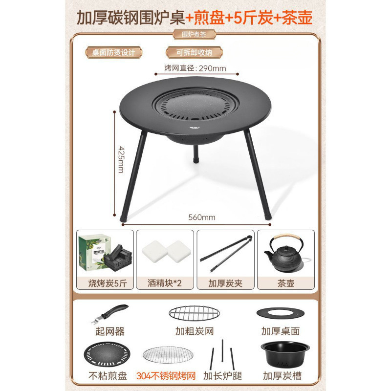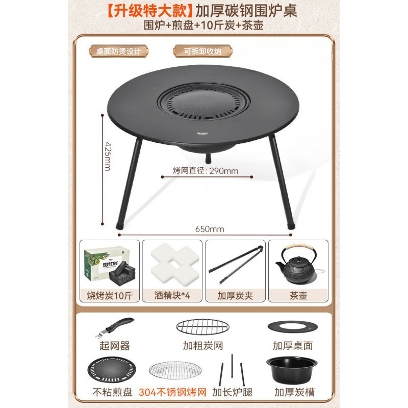 • [특대형] 탄소강 스토브 [304 그릴 그리드 + 확대된 데스크탑]
