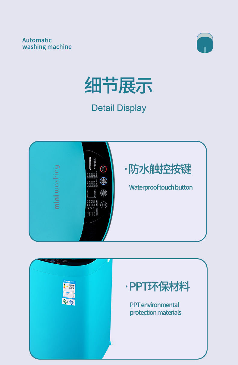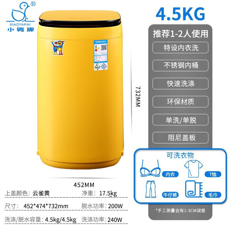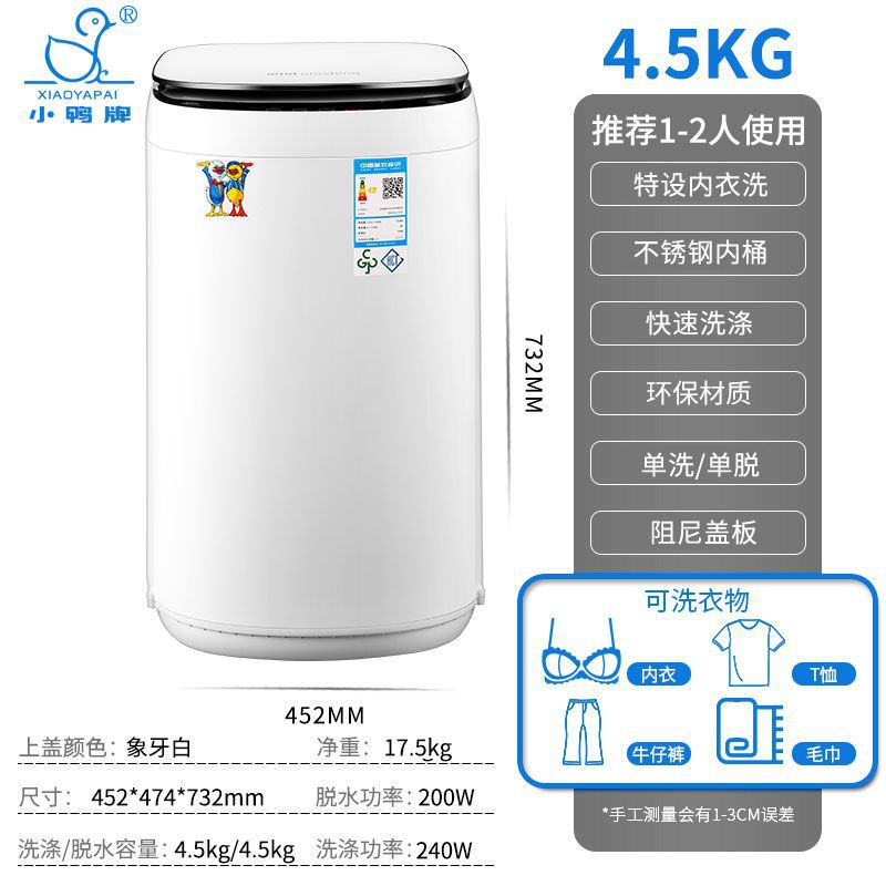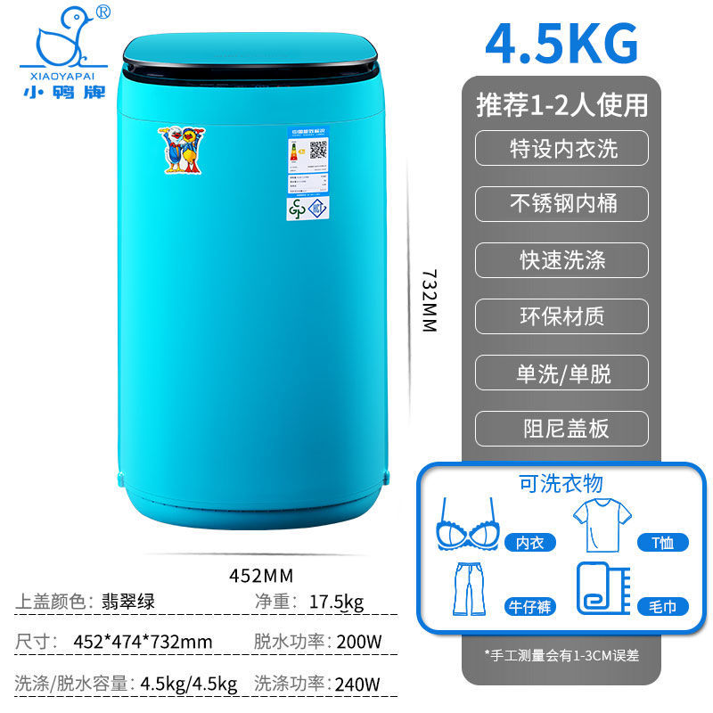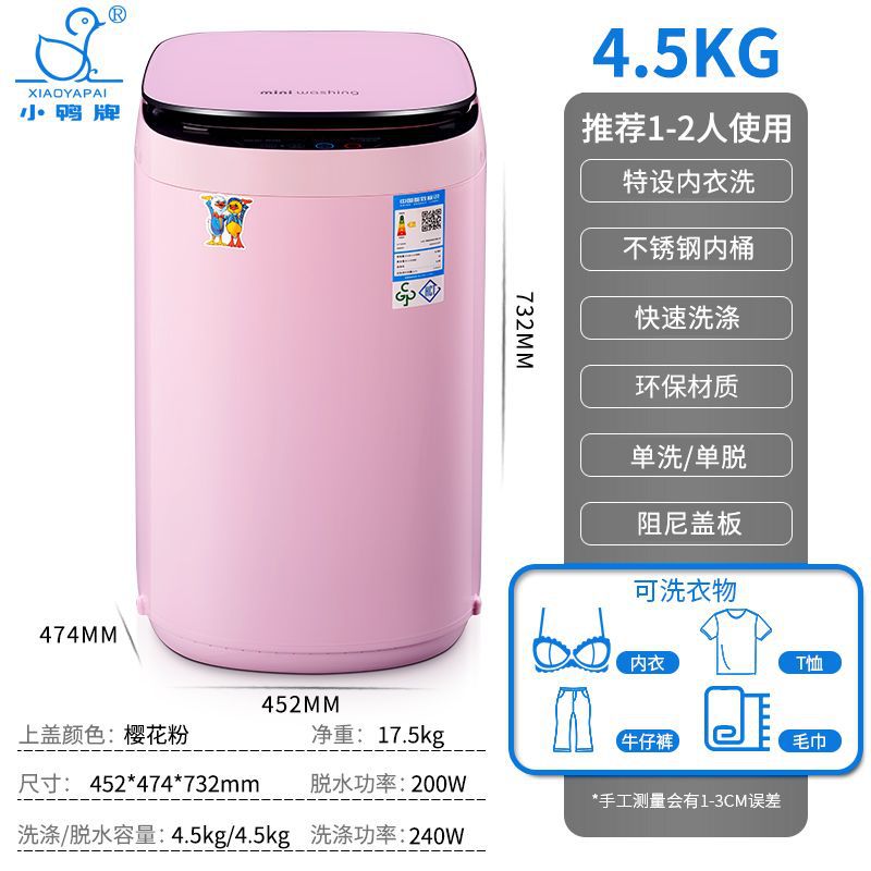 Xiaoya 브랜드 4.5kg 소형 미니 아기 아기 홈 기숙사 살균 펄 세탁기 완전 자동 세탁기