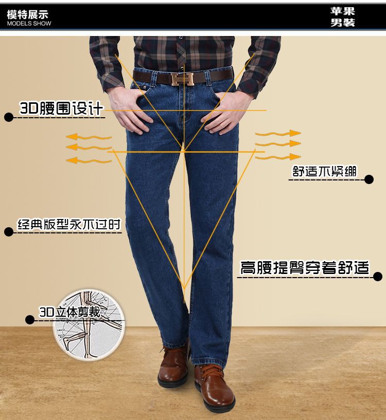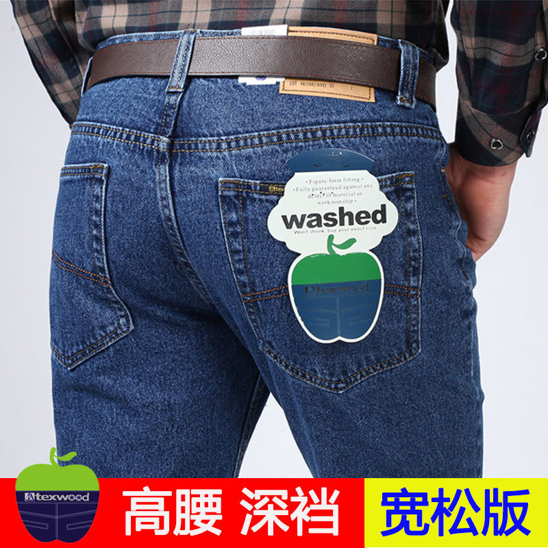 남성용 애플 청바지, 스트레이트 레그, 루즈, 중년 및 노인, 하이 웨이스트, 깊은 가랑이, 순면, 사계절 스타일, 남성용 대형 긴 바지스토어 가기