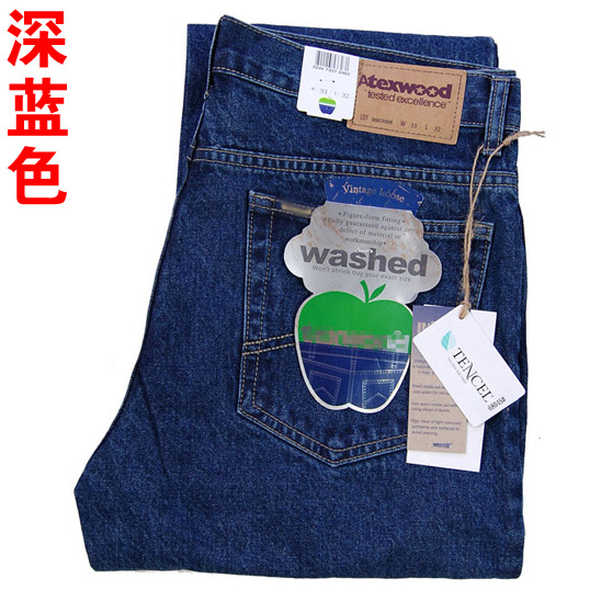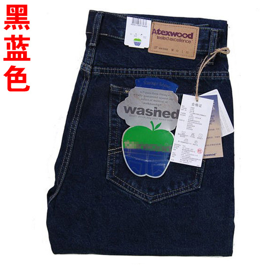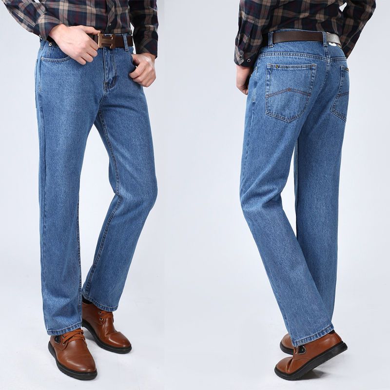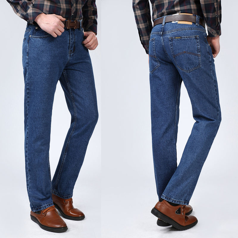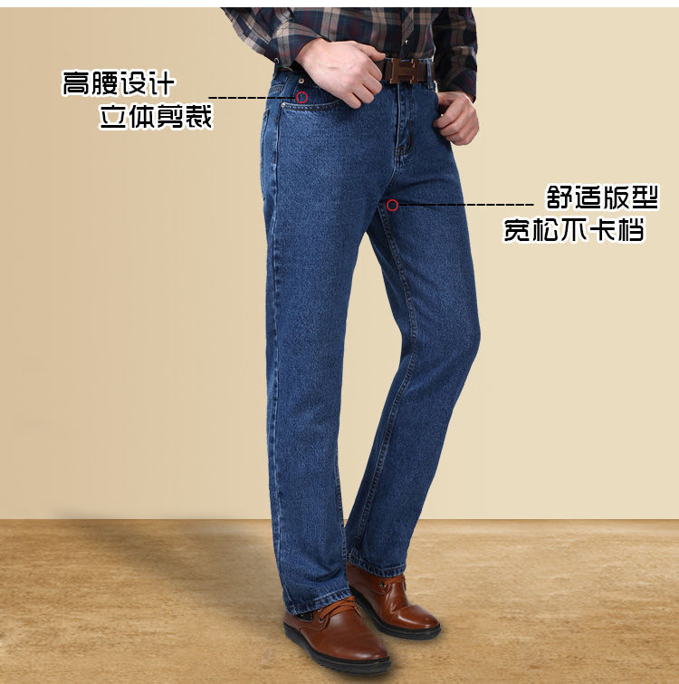 남성용 애플 청바지, 스트레이트 레그, 루즈, 중년 및 노인, 하이 웨이스트, 깊은 가랑이, 순면, 사계절 스타일, 남성용 대형 긴 바지