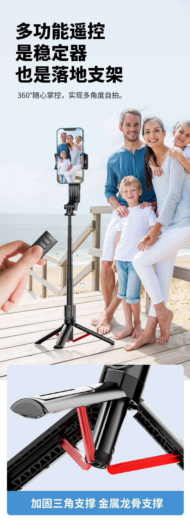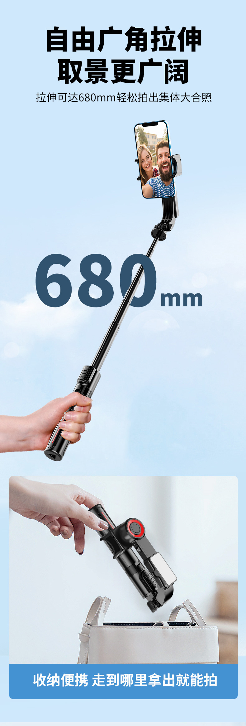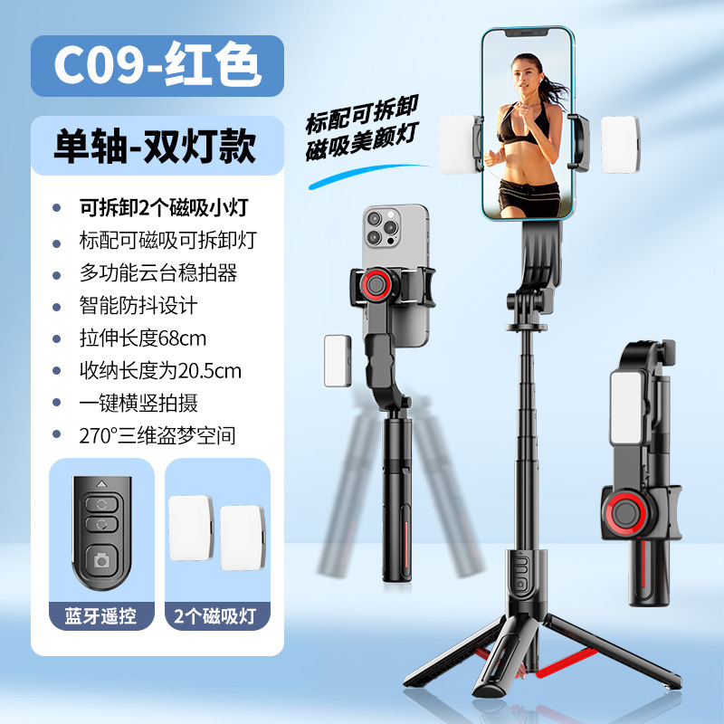 새로운 C09 단일 축 안정기 범용 휴대 전화 셀카 스틱 블루투스 원격 제어 회전 Inception 라이브 방송 스탠드스토어 가기