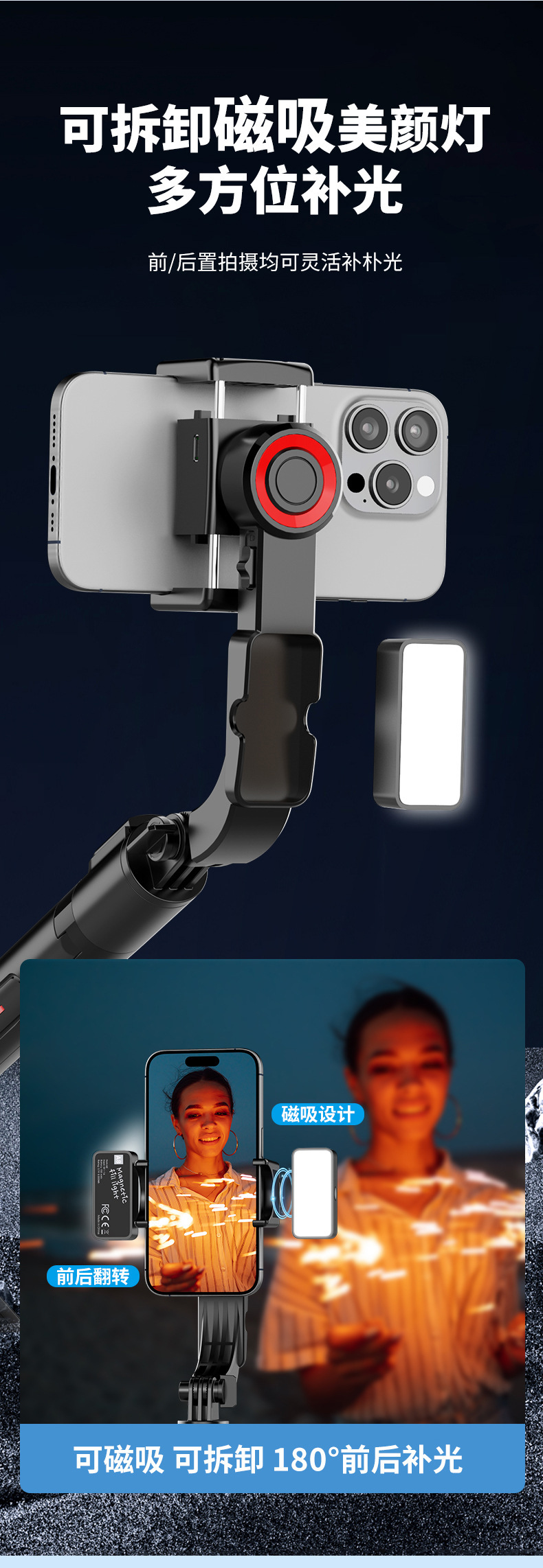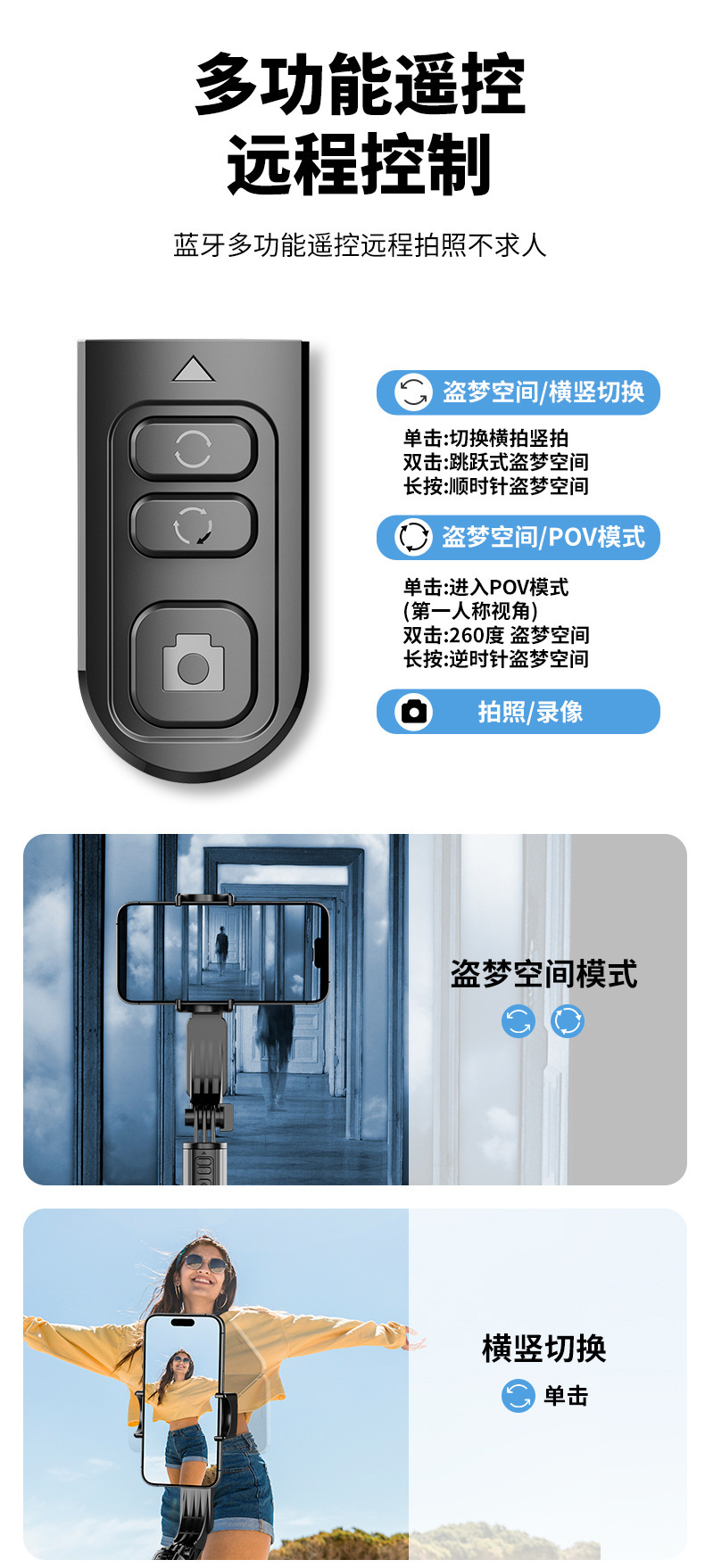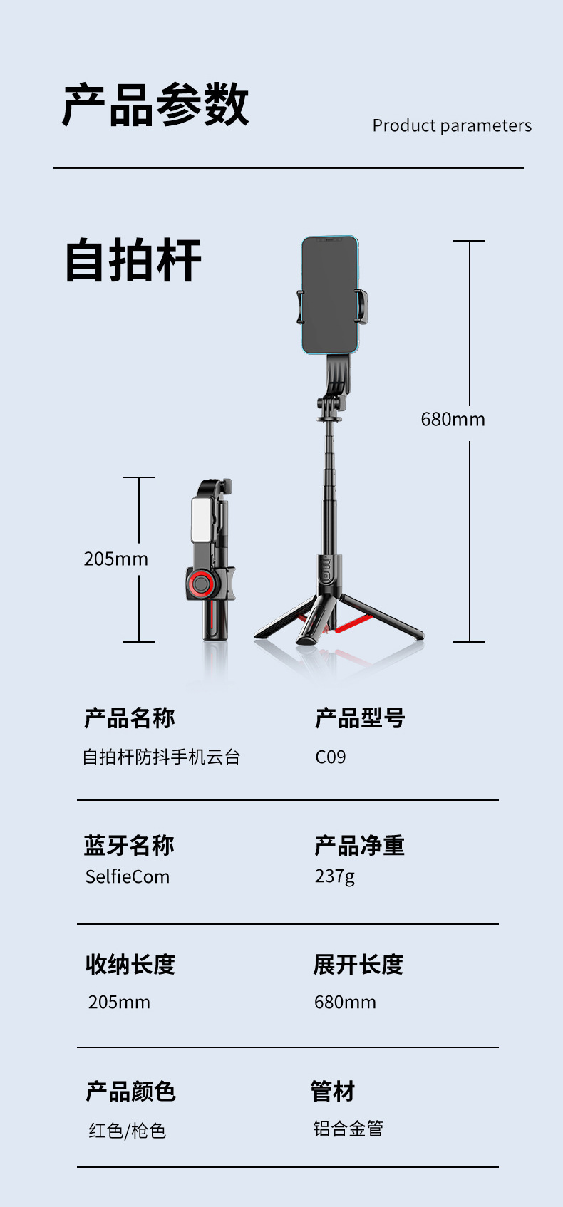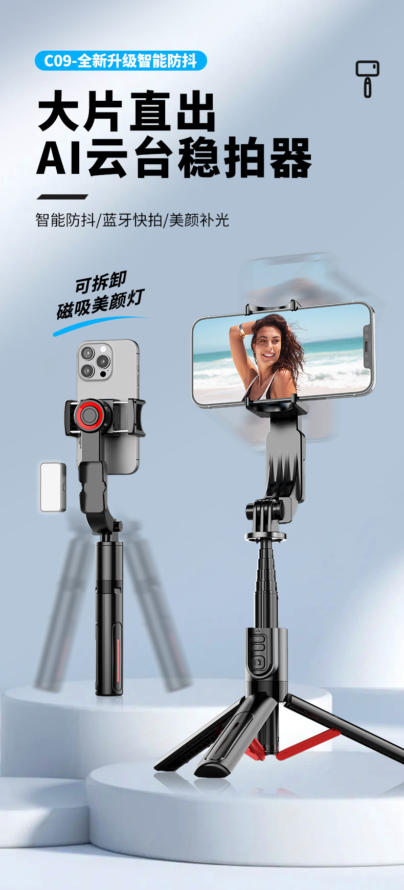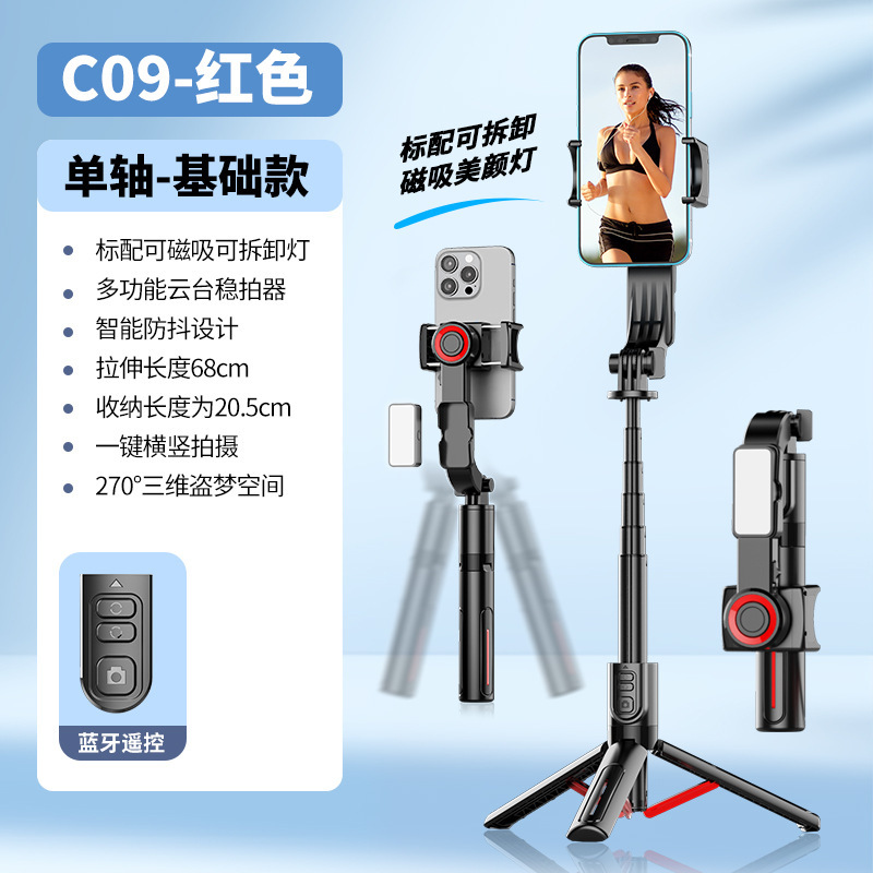 새로운 C09 단일 축 안정기 범용 휴대 전화 셀카 스틱 블루투스 원격 제어 회전 Inception 라이브 방송 스탠드