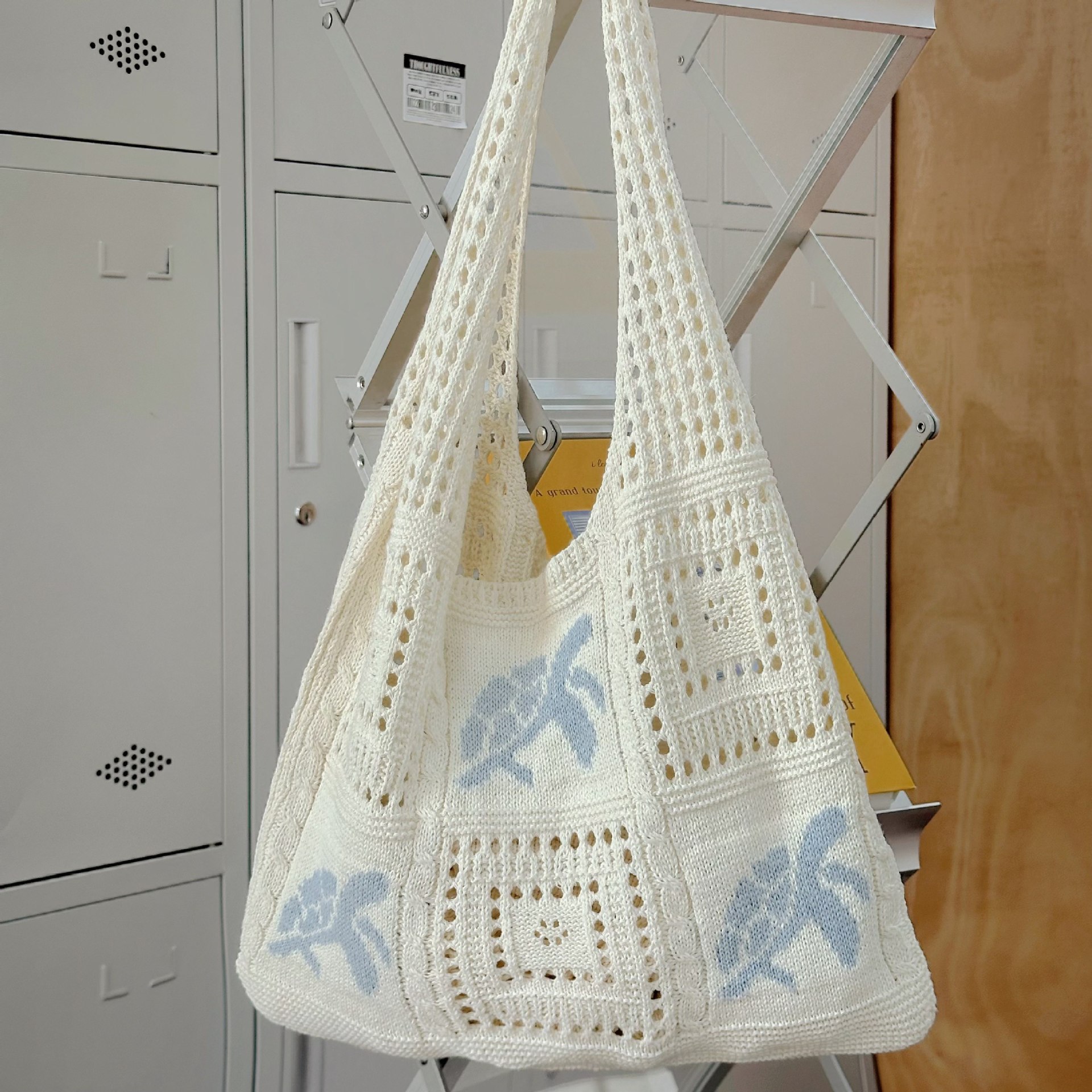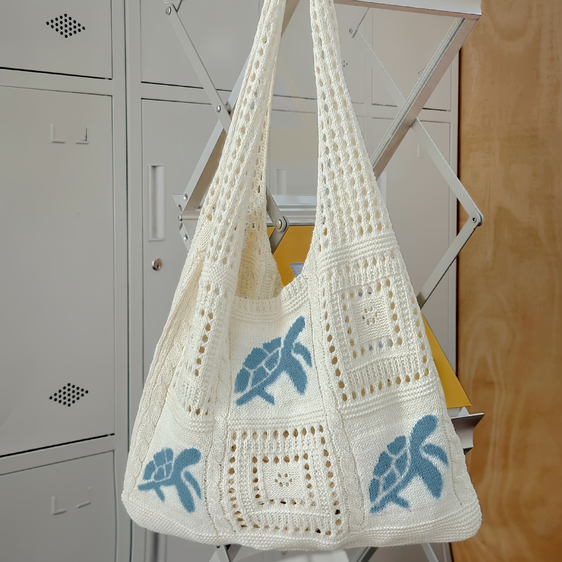 국경 간 temu 니트 가방 복고풍 중공 손으로 짠 가방 어깨 가방 푸른 거북이 여성 핸드백 쇼핑백