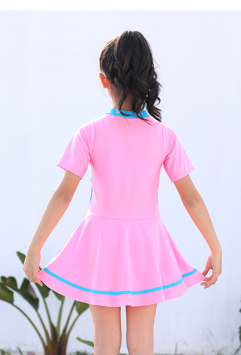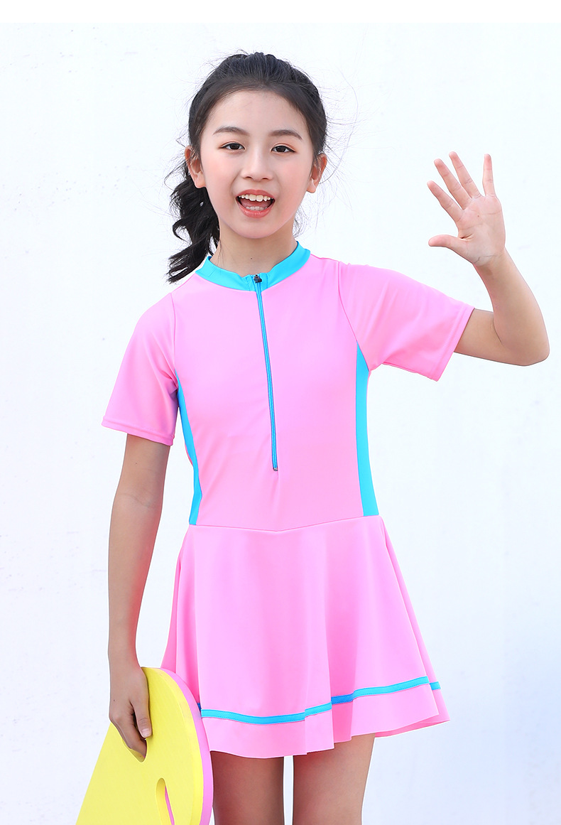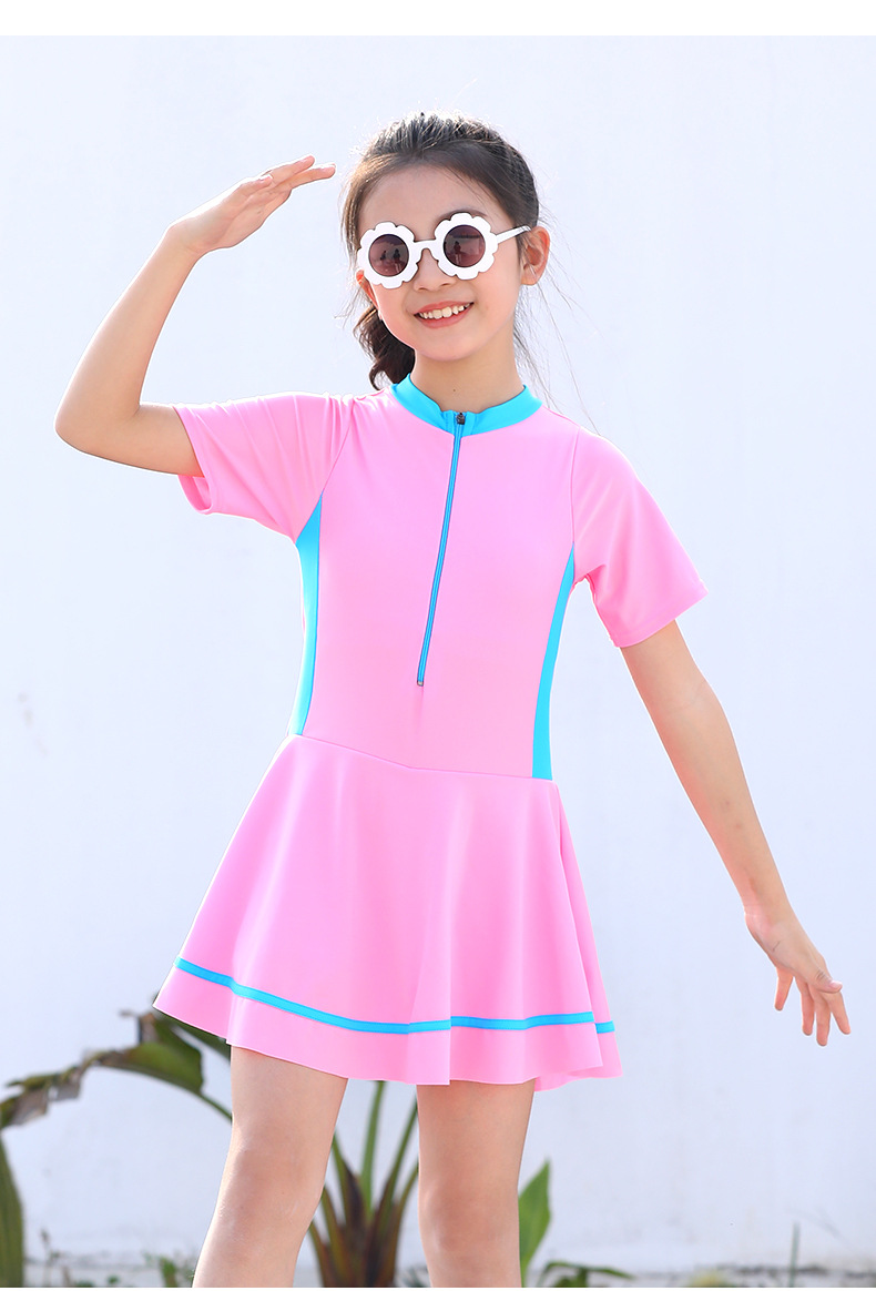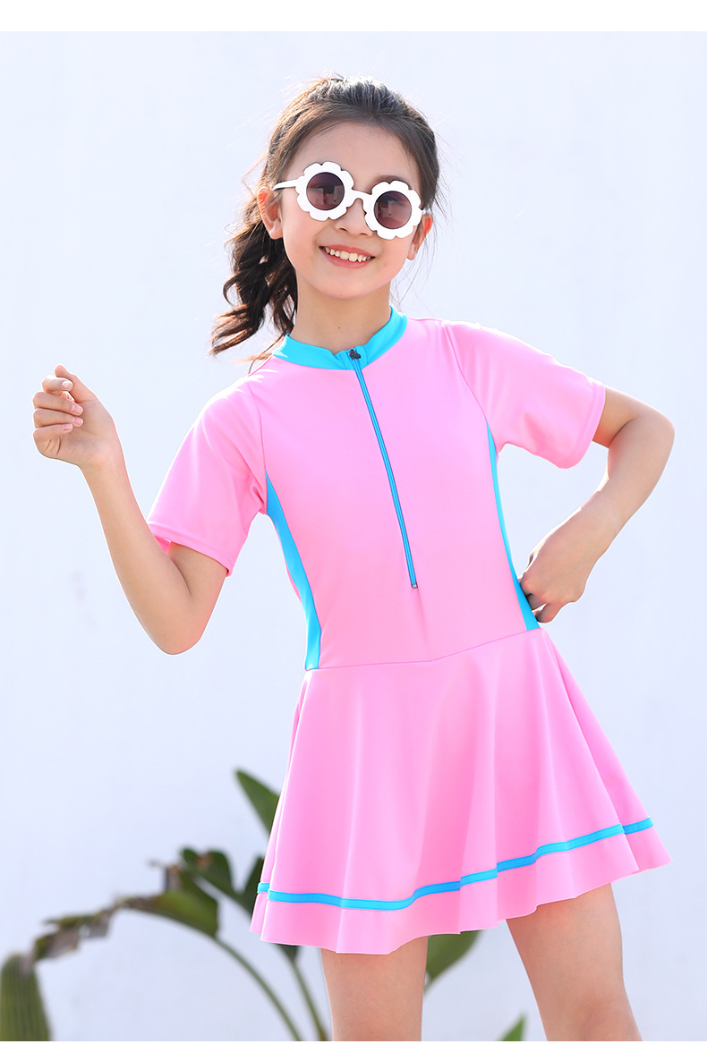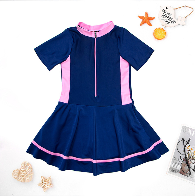 아동 수영복, 여아 해변 반팔 원피스, 중소형 아동 수영복, 학생 긴팔 자외선 차단 수영복 도매