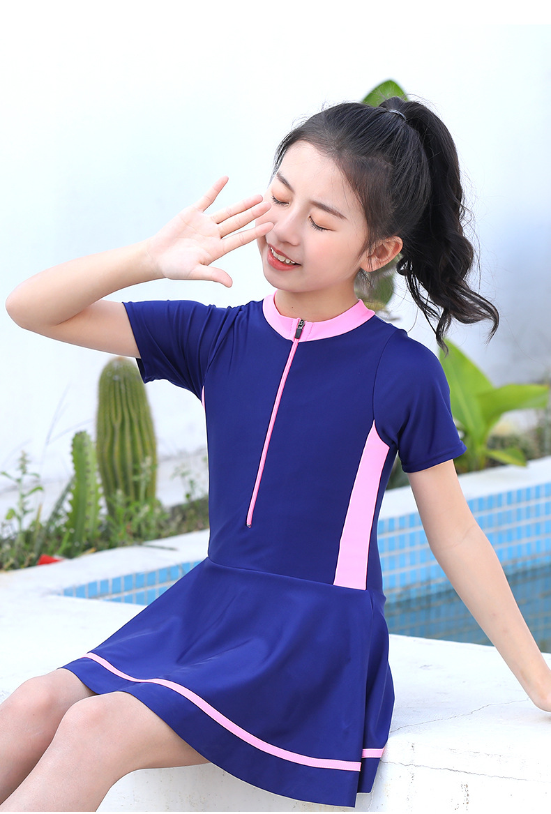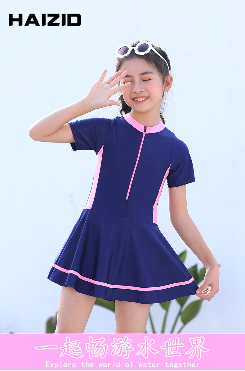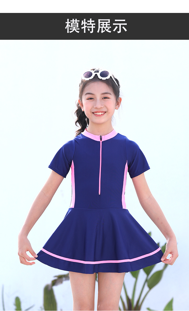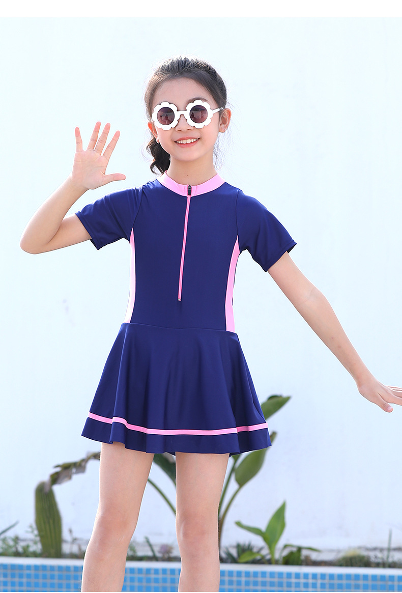 아동 수영복, 여아 해변 반팔 원피스, 중소형 아동 수영복, 학생 긴팔 자외선 차단 수영복 도매