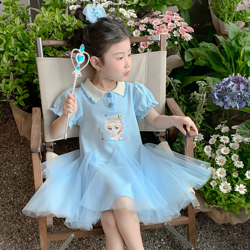 여자 드레스 여름 2025 새로운 스타일 여자 엘사 공주 드레스 어린이 폴로 엘사 드레스 여름 드레스