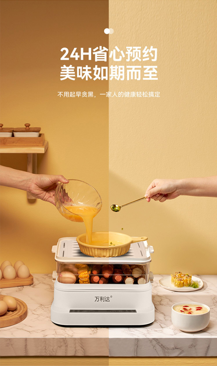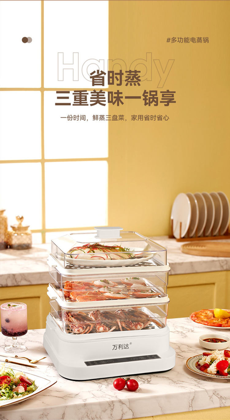 Wanlida 전기 찜통 대용량 가정용 투명 스팀 포트 지능형 3 층 아침 식사 기계 스마트 찜통스토어 가기