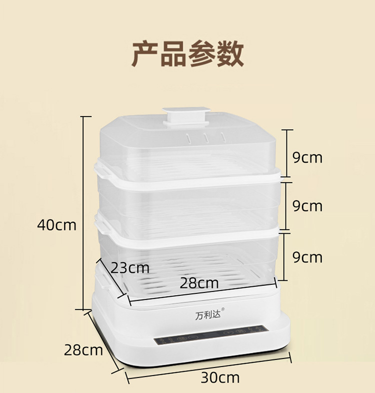 Wanlida 전기 찜통 대용량 가정용 투명 스팀 포트 지능형 3 층 아침 식사 기계 스마트 찜통