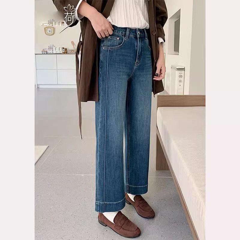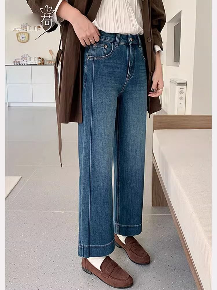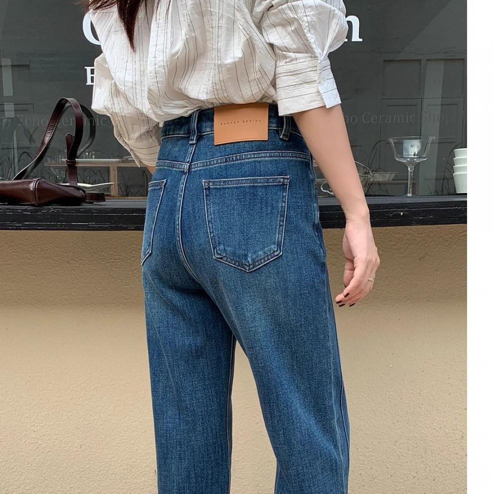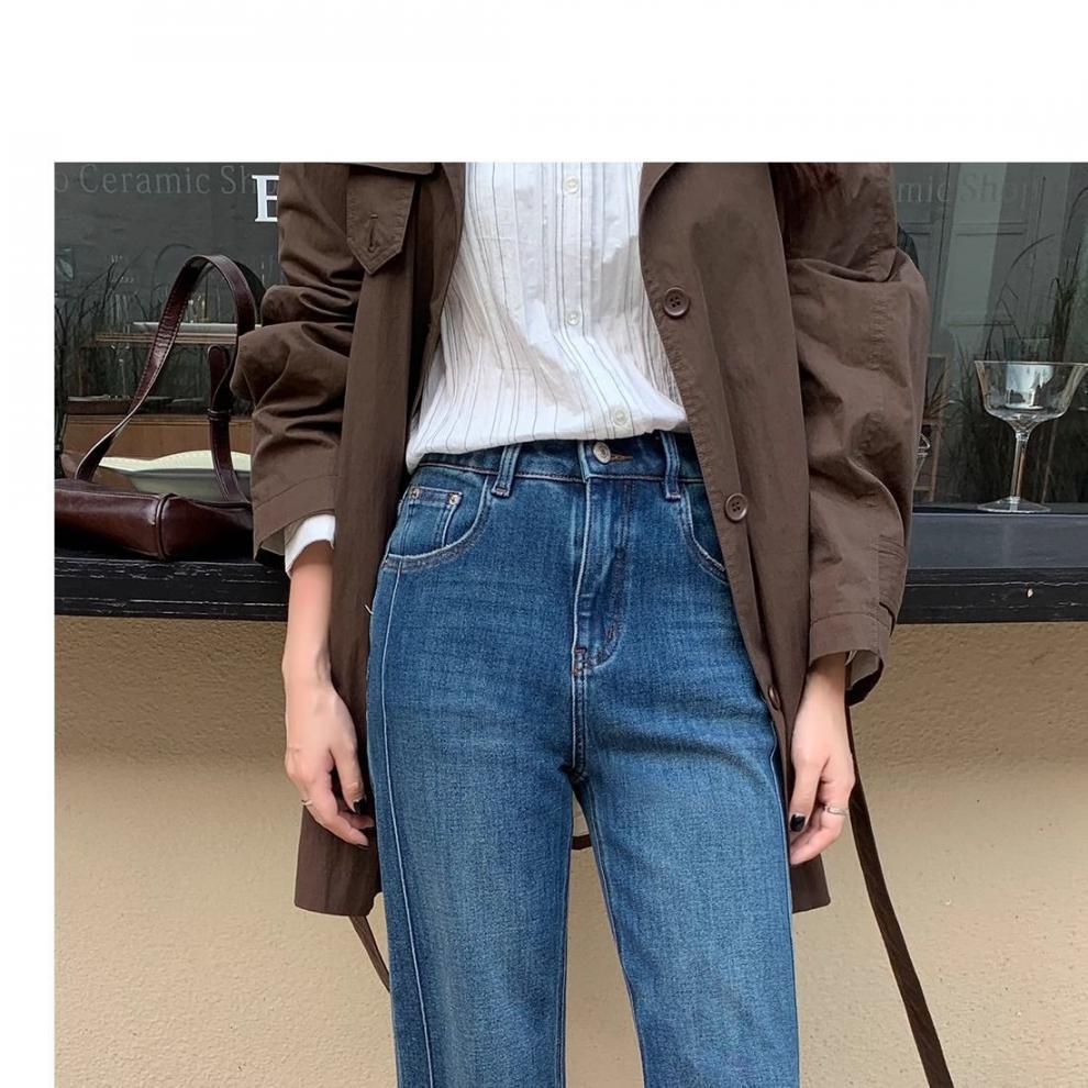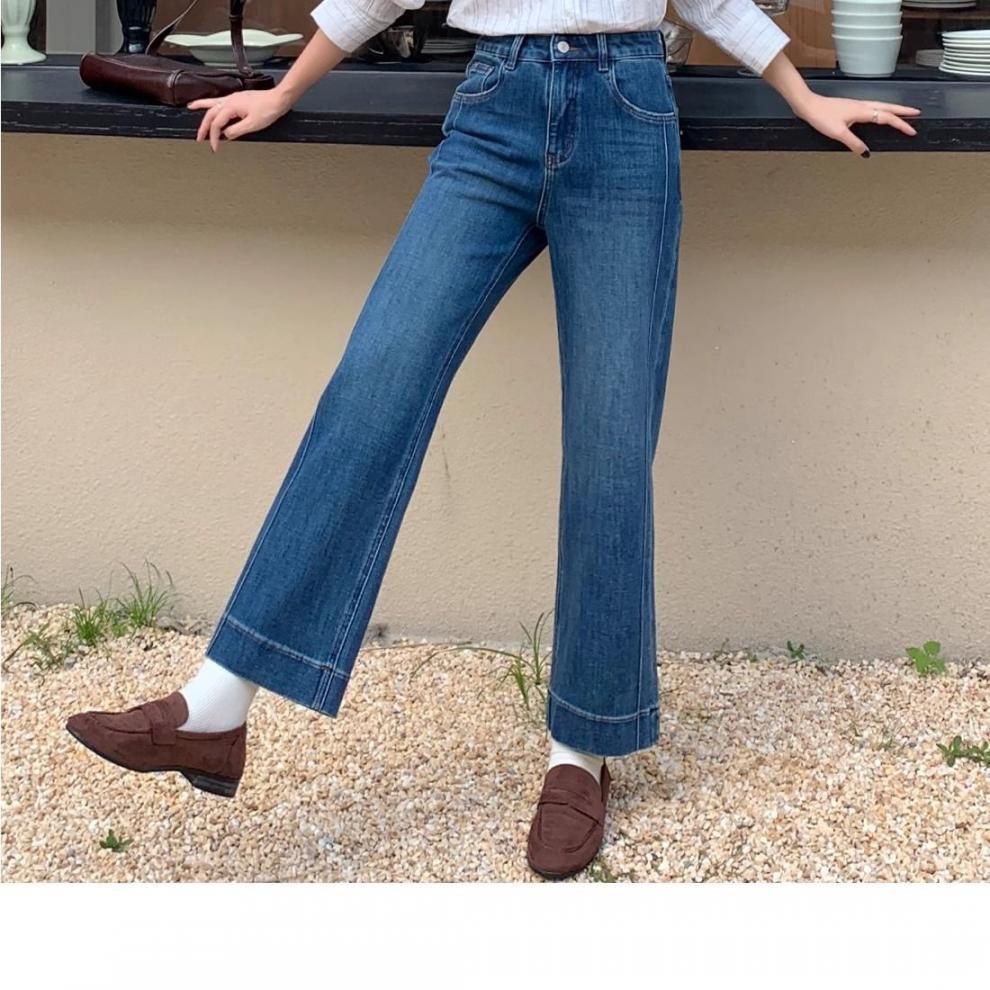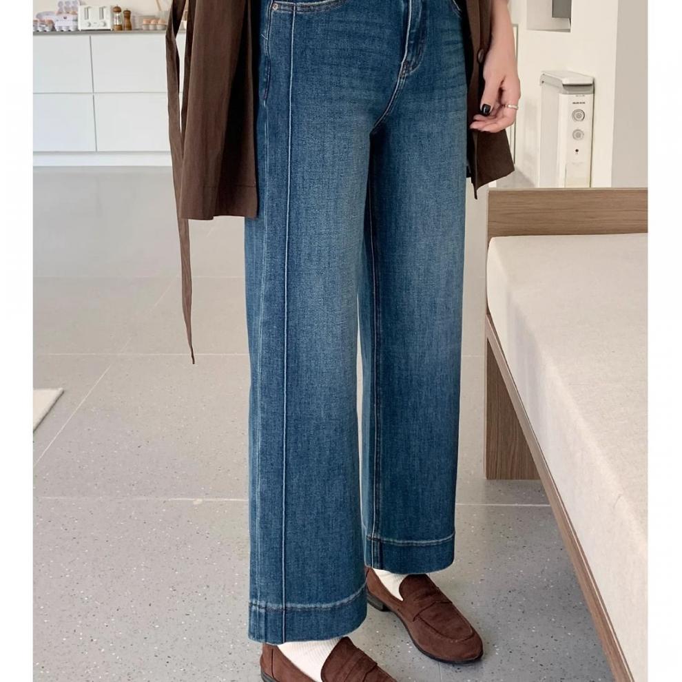 여성을위한 레트로 스트레이트 청바지 봄 새로운 배 모양의 큰 사이즈 뚱뚱한 mm 하이 웨이스트 슬리밍 9 점 와이드 레그 팬츠스토어 가기