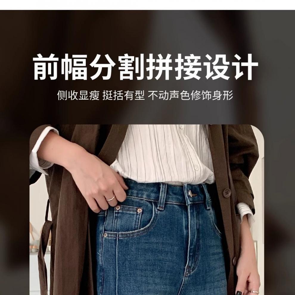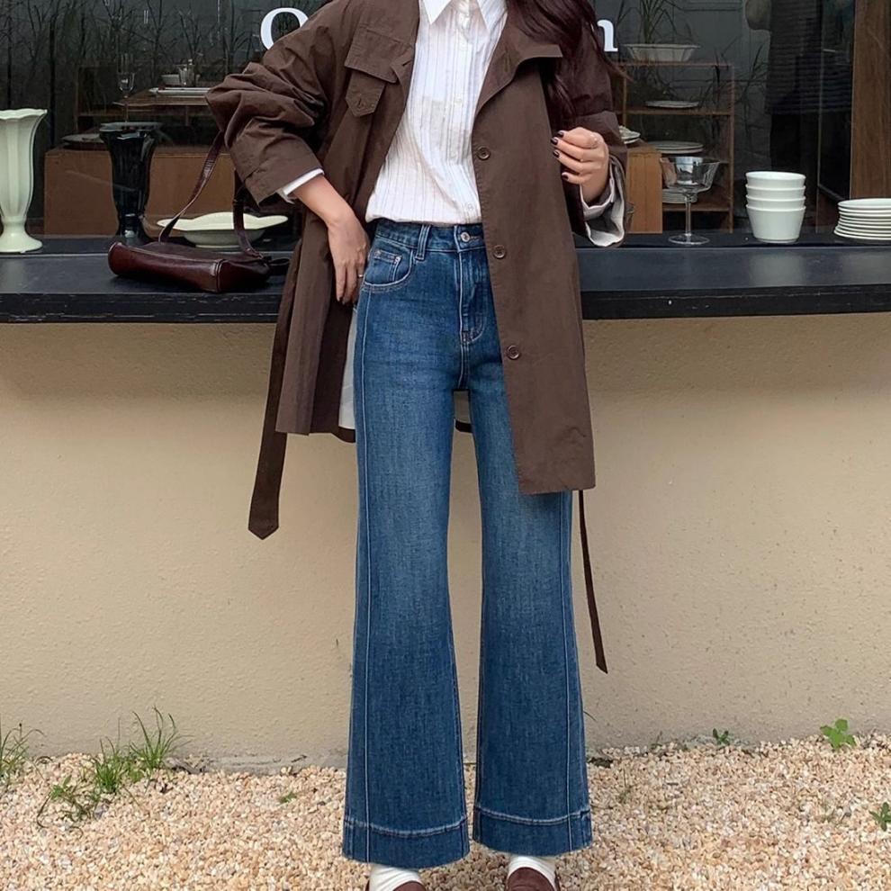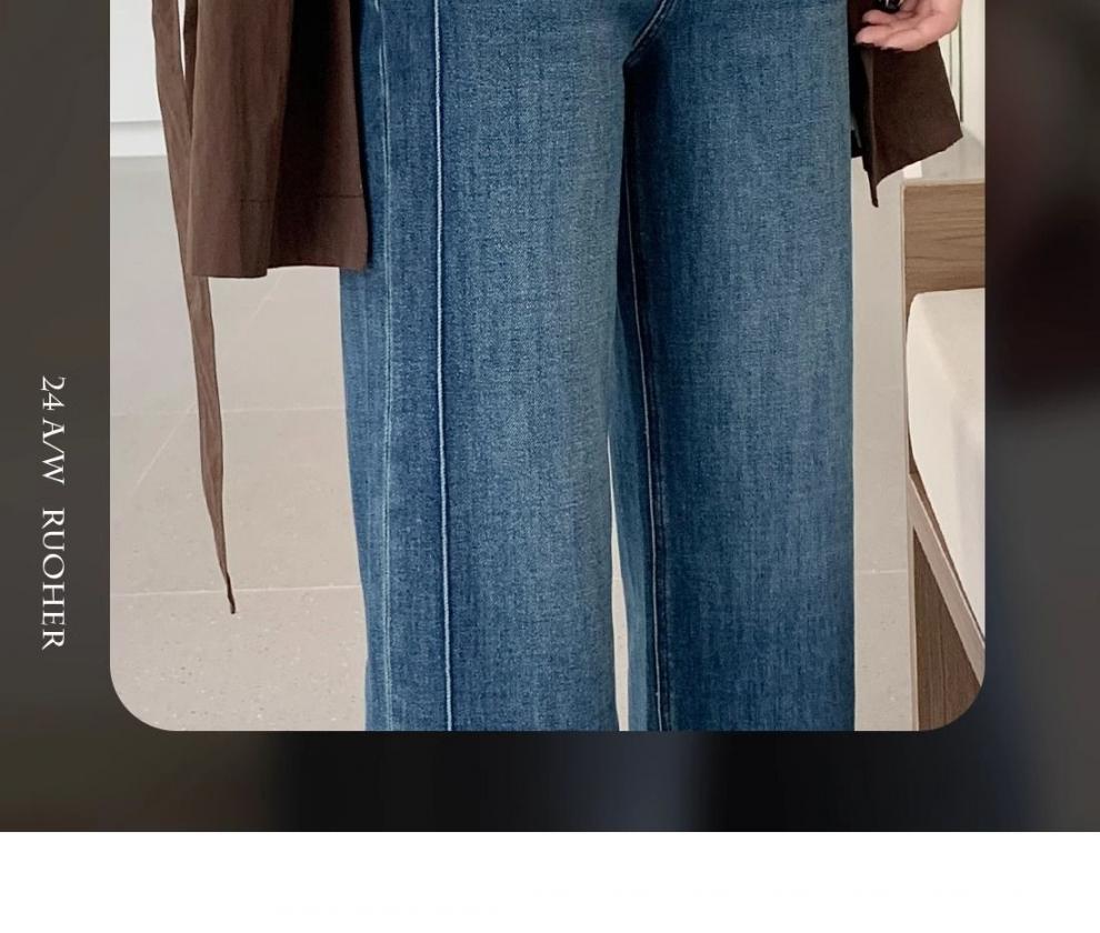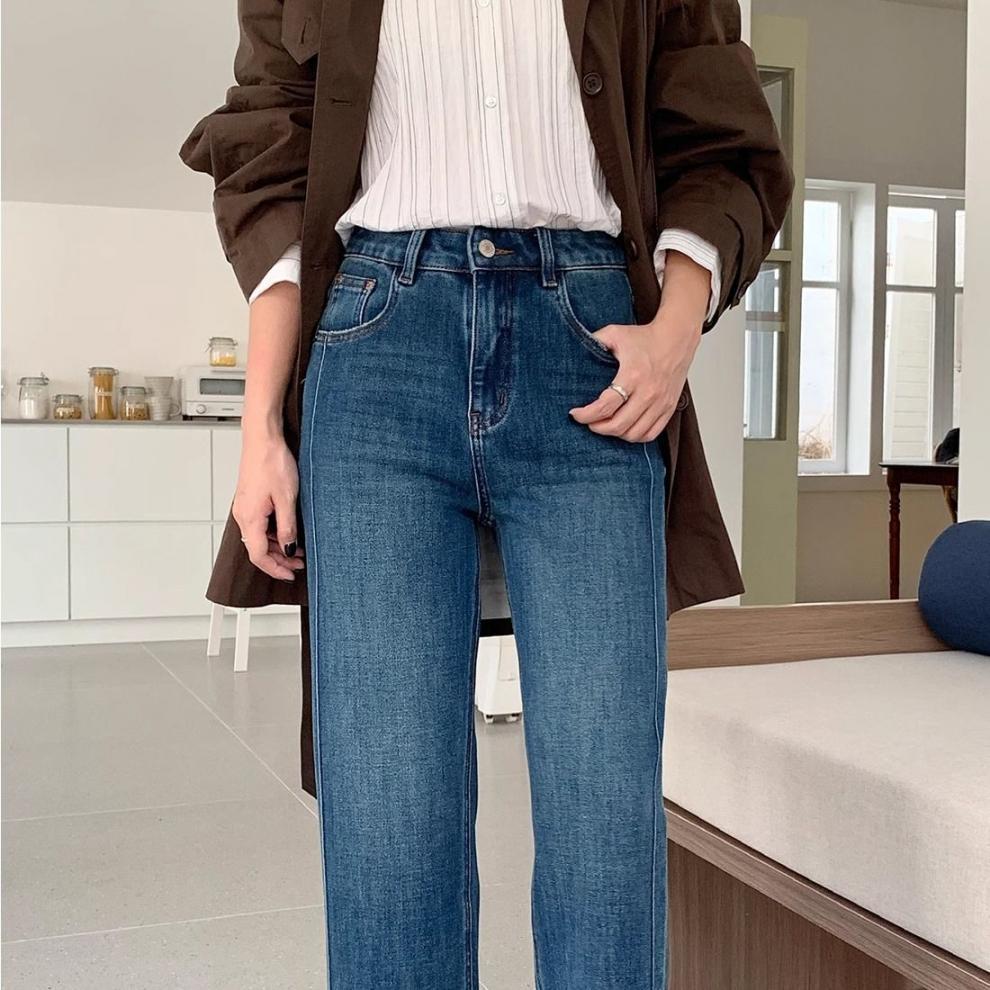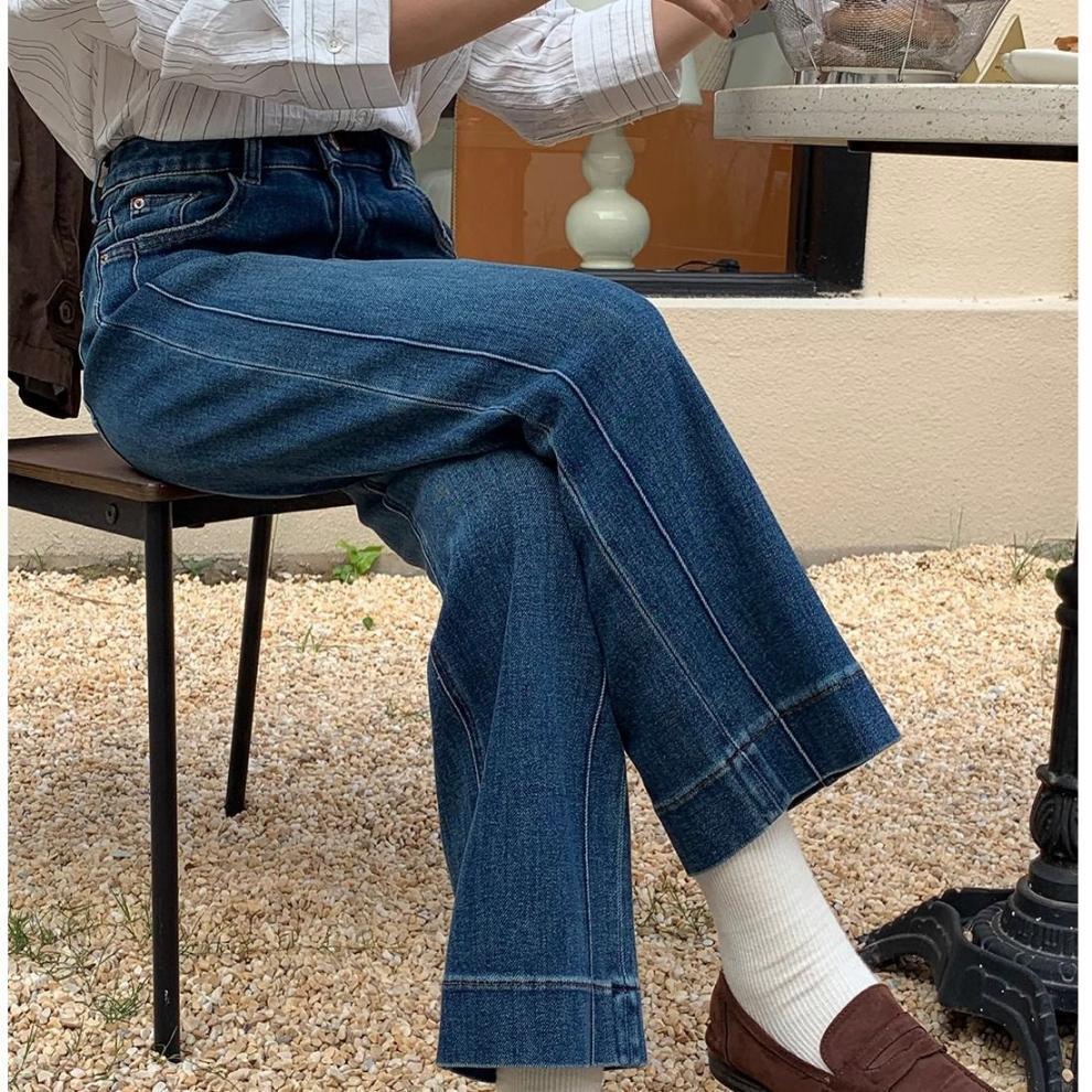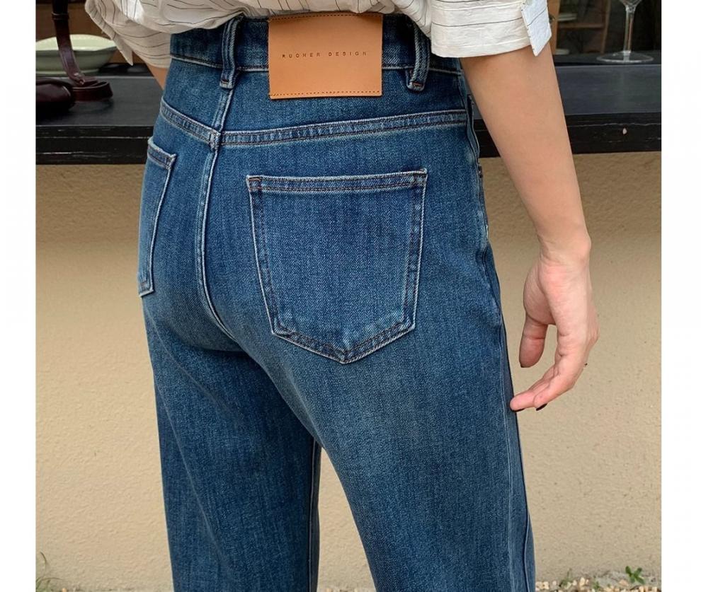 여성을위한 레트로 스트레이트 청바지 봄 새로운 배 모양의 큰 사이즈 뚱뚱한 mm 하이 웨이스트 슬리밍 9 점 와이드 레그 팬츠스토어 가기