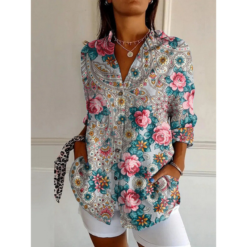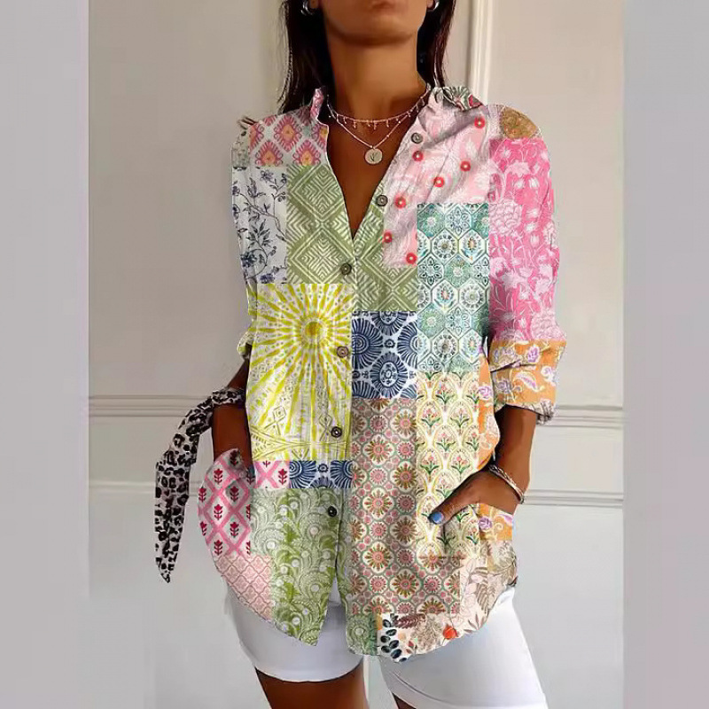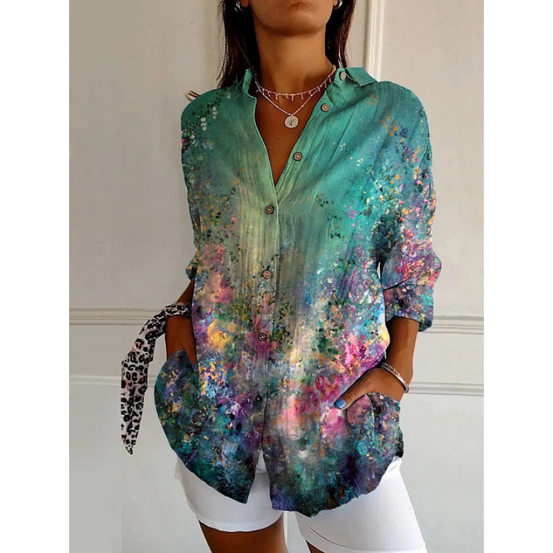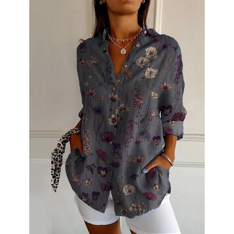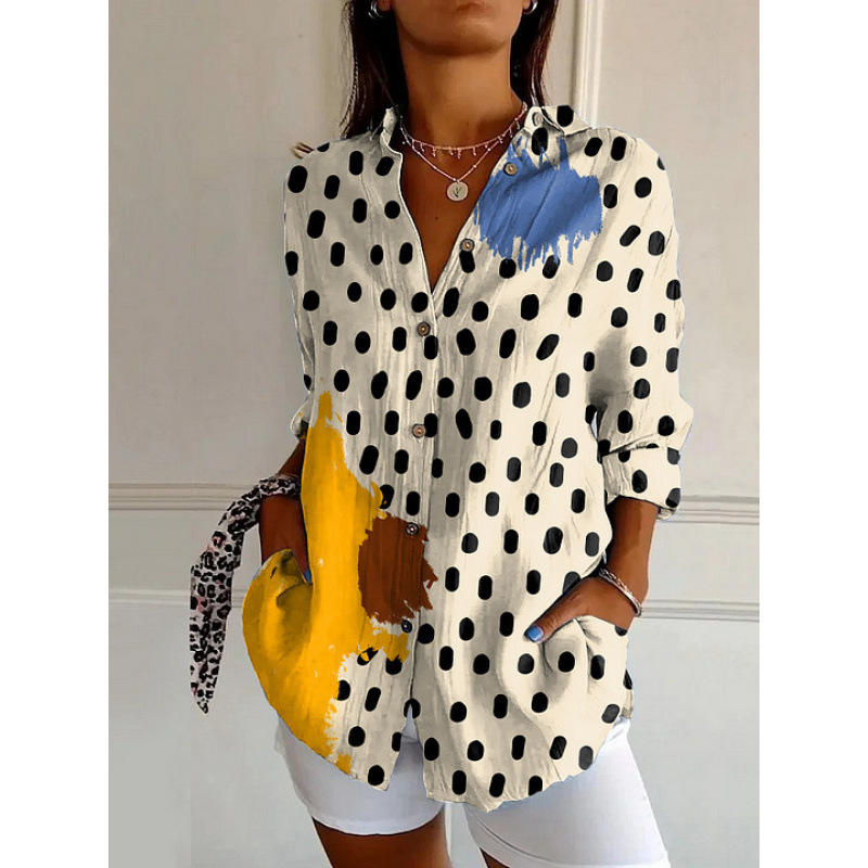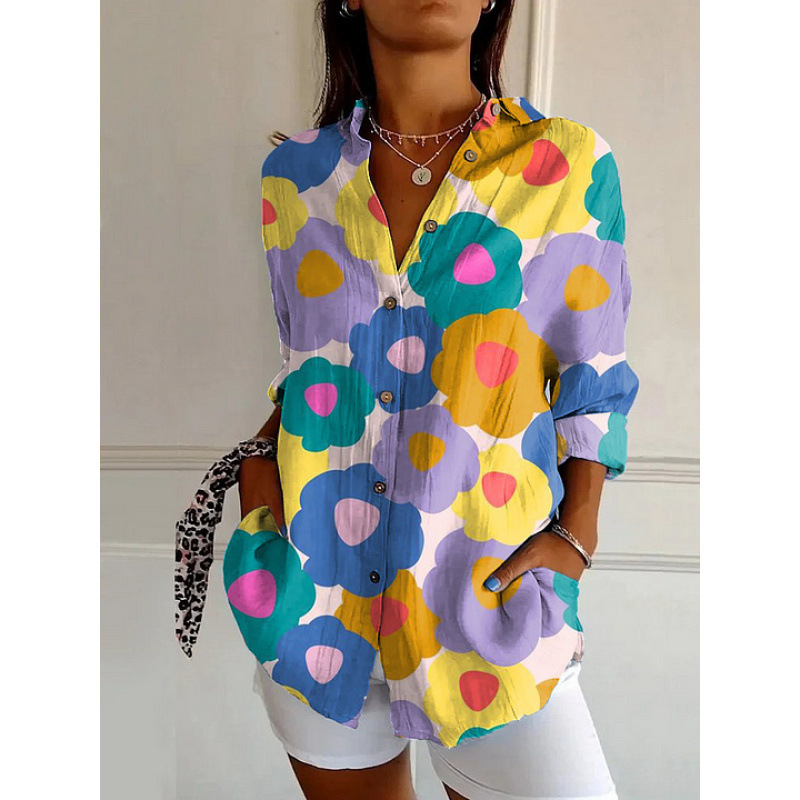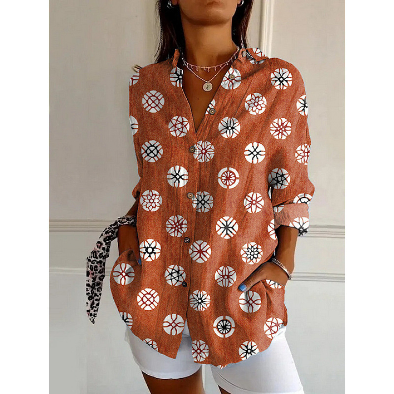독립 사이트 플러스 사이즈 여성용 새 긴팔 버튼 셔츠 솔리드 컬러 여성용 버튼 셔츠 캐주얼하고 편안합니다.