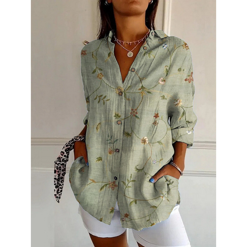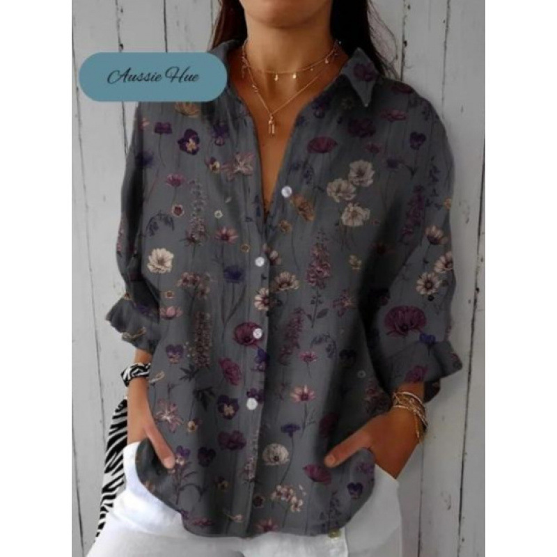 독립 사이트 플러스 사이즈 여성용 새 긴팔 버튼 셔츠 솔리드 컬러 여성용 버튼 셔츠 캐주얼하고 편안합니다.스토어 가기