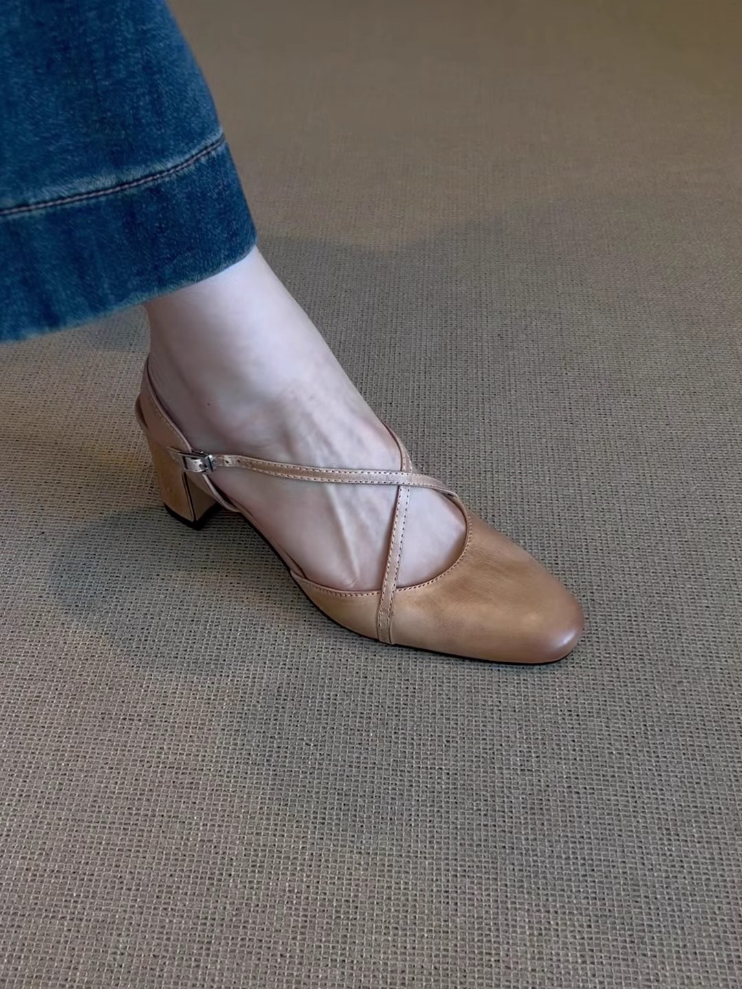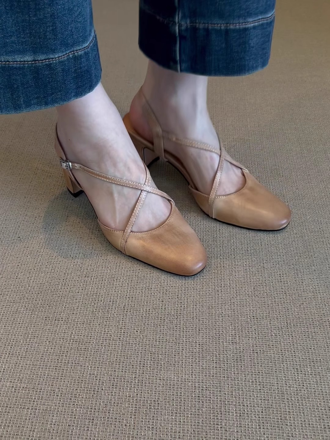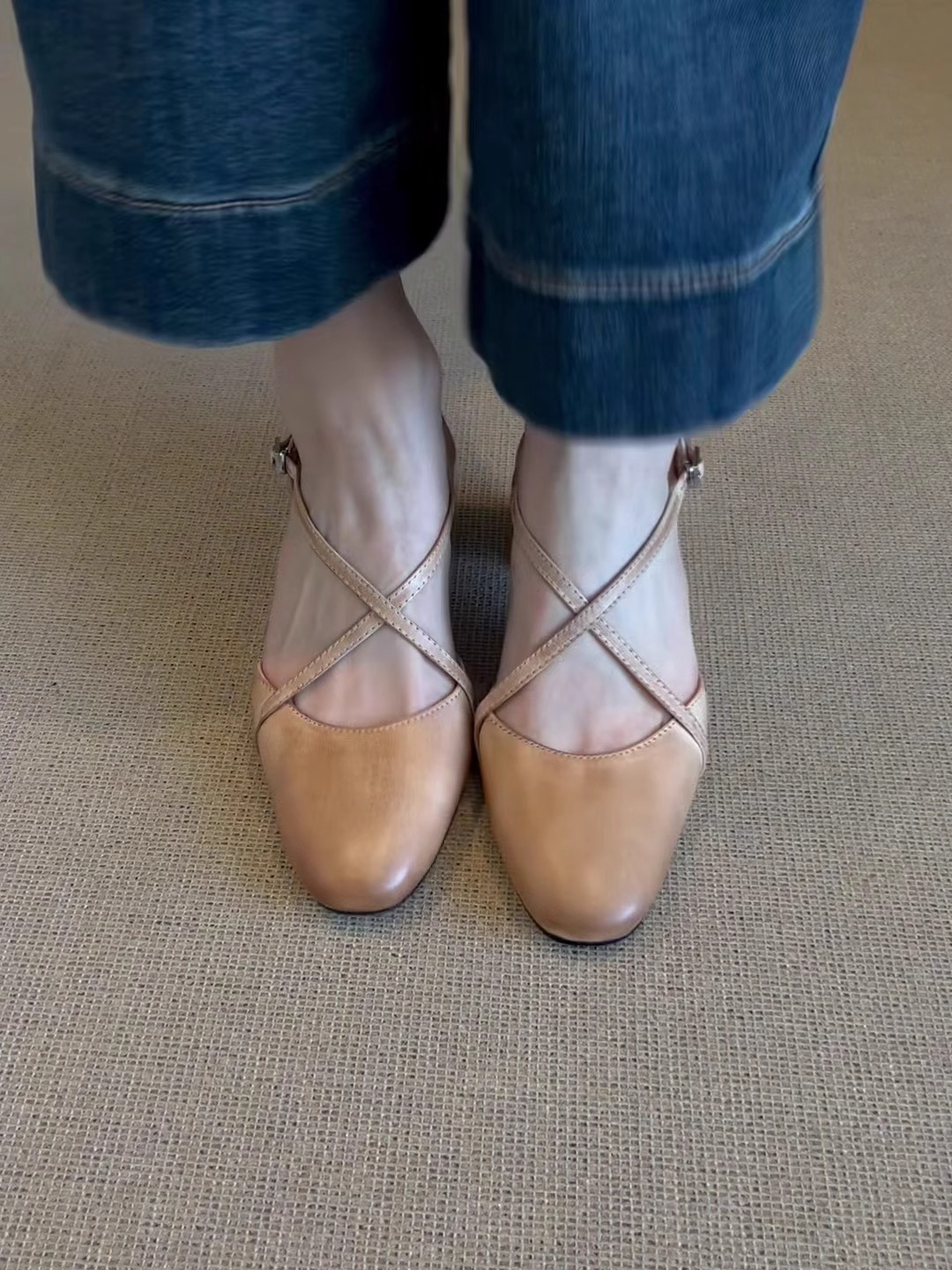 양가죽 버전 ~ 레트로 스타일 워싱 소가죽 크로스 스트랩 토캡 샌들 여성 여름 아름다운 스커트 플랫 슈즈