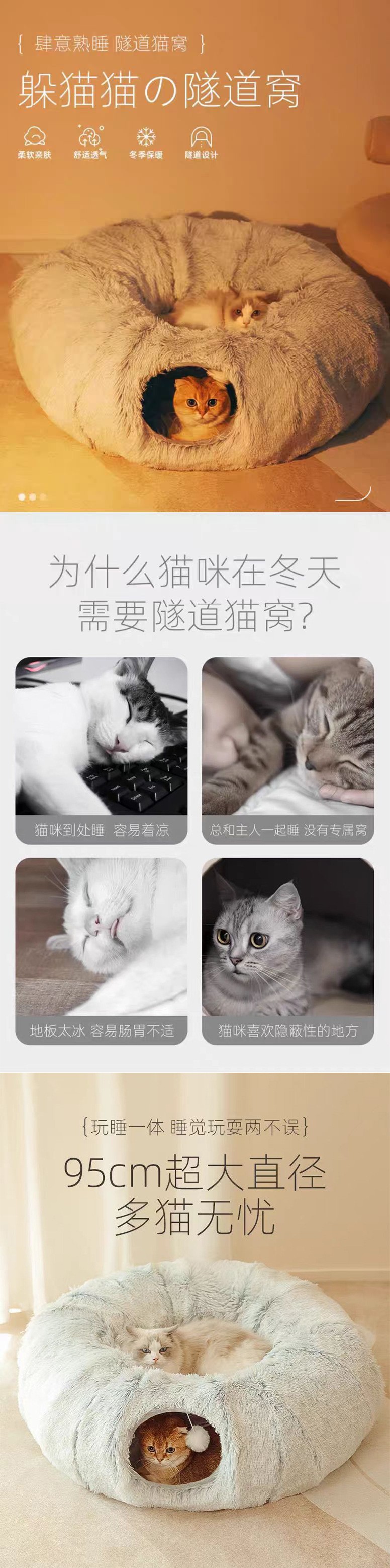 무료배송 고양이 터널 겸용 고양이 집, 반려동물용 접이식 만능 고양이 통로, 고양이 하우스, 사계절용 천 소재 집스토어 가기