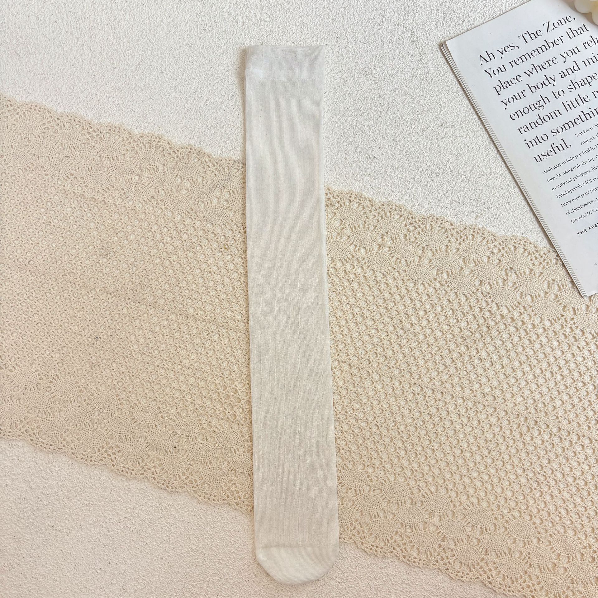• L 사이즈 [화이트 1켤레] 굽이 없는 스트레이트, 양말 길이를 참고하세요