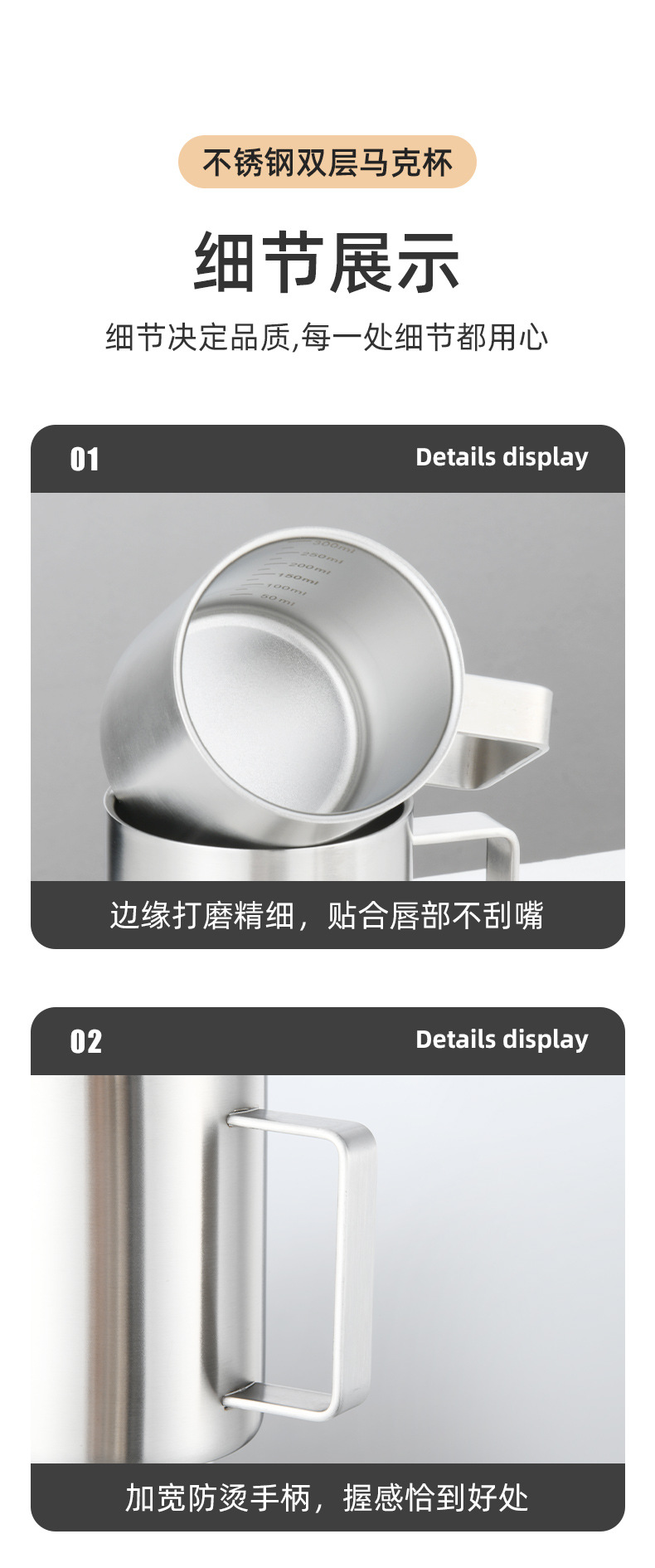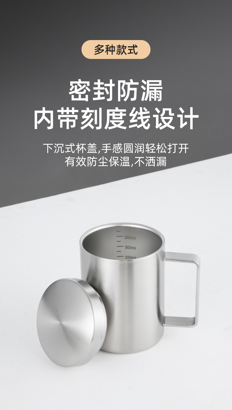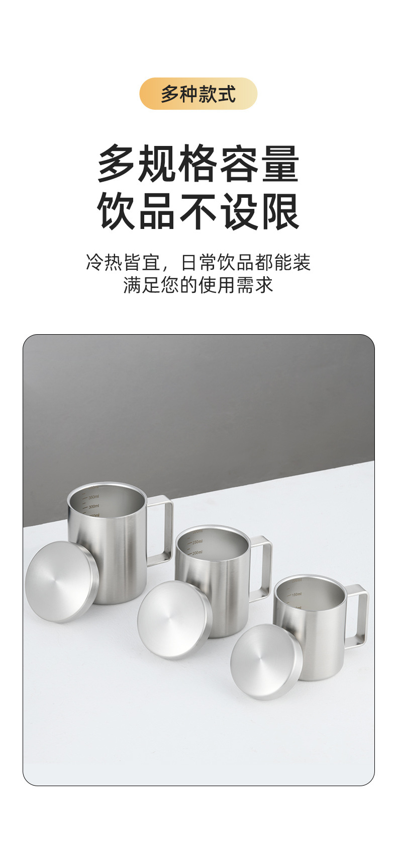 316 스테인레스 스틸 컵, 사각 손잡이 머그컵, 이중층 화상 방지 커피컵, 가정용, 유치원, 학교, 학생용 물컵스토어 가기