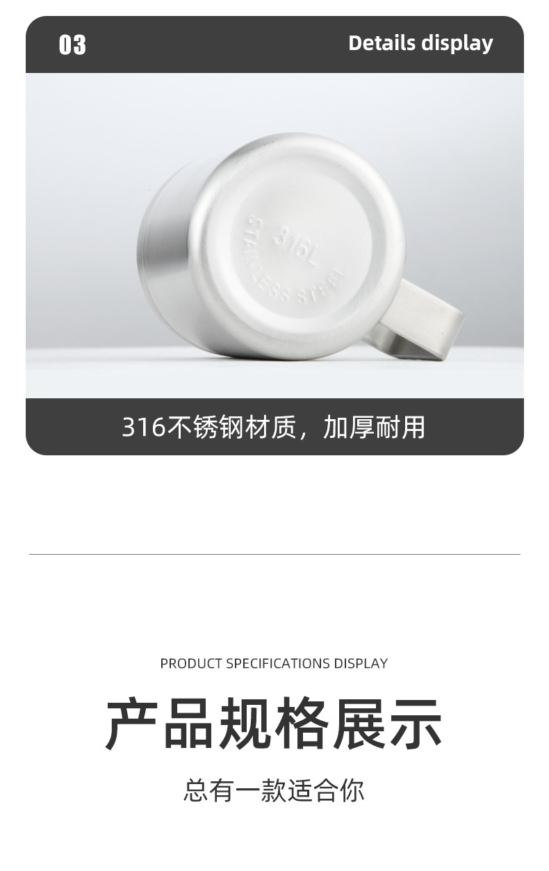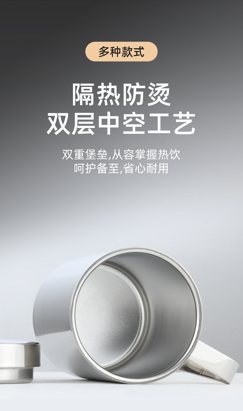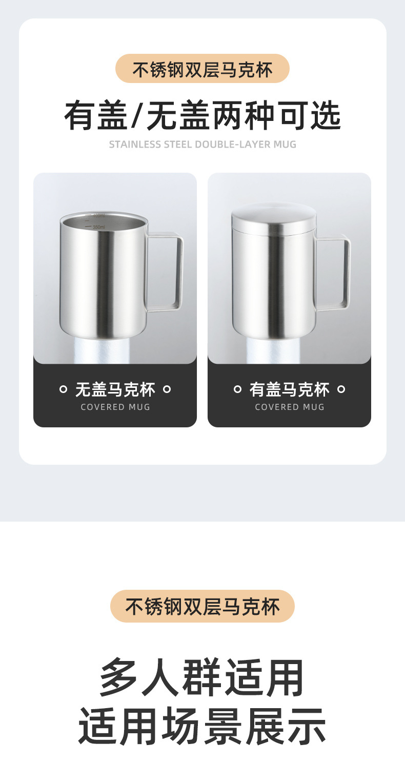316 스테인레스 스틸 컵, 사각 손잡이 머그컵, 이중층 화상 방지 커피컵, 가정용, 유치원, 학교, 학생용 물컵