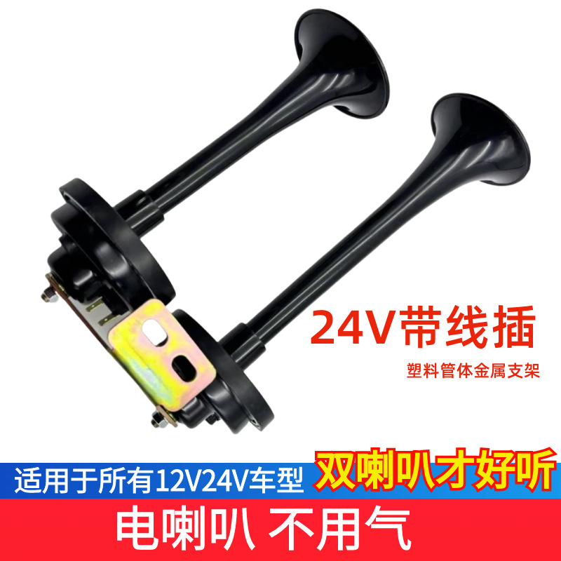 트럭 이중 튜브 24v 전기 플루트 대형 긴 경적 자동차 전기 경적 수정 슈퍼 시끄러운 범용 자동차 12V 자동차 SUV스토어 가기