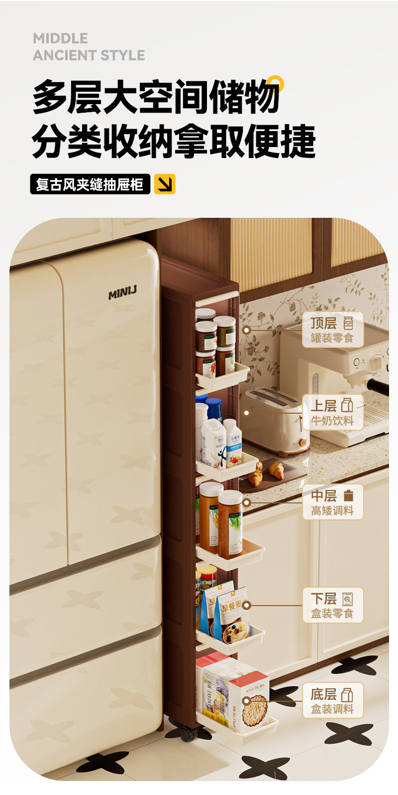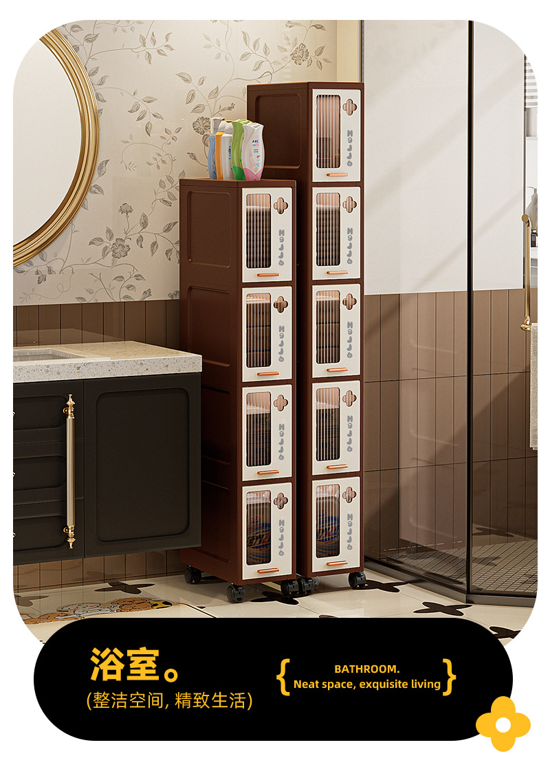 주방 및 욕실 틈새 수납장, 욕실 바닥에 설치된 매우 좁은 수납장, 욕실 변기 간격 수납선반스토어 가기